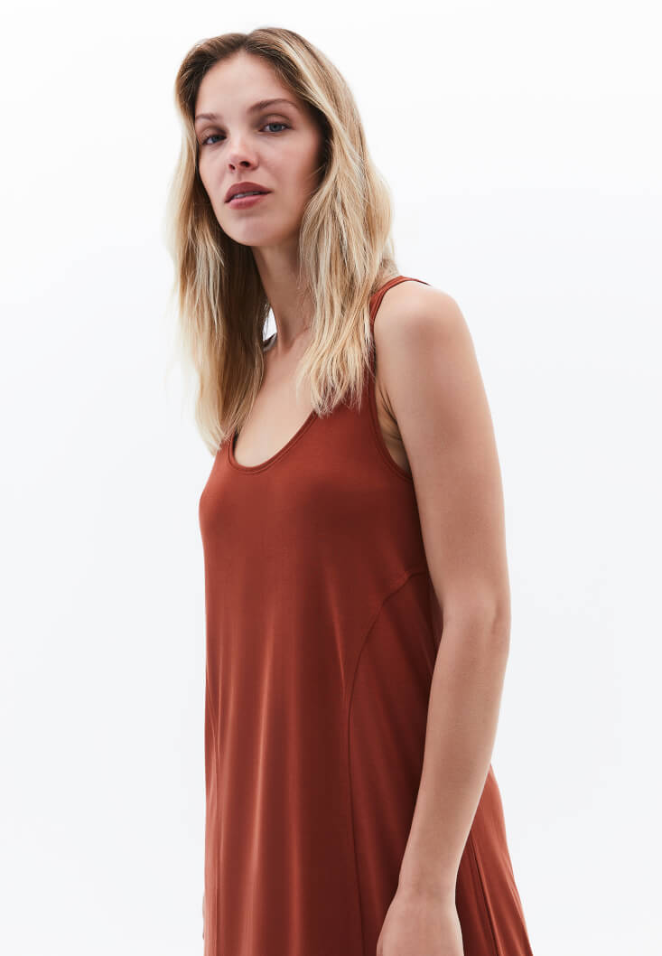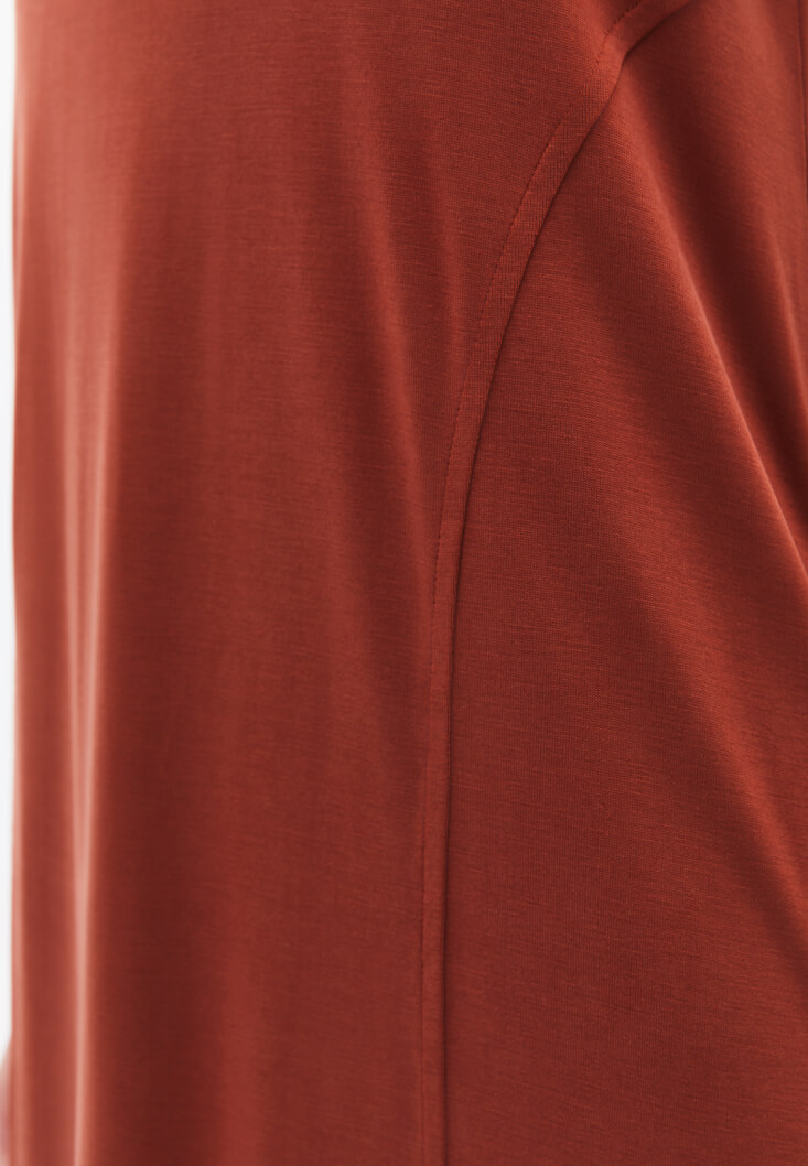• Bayan Kiremit Modal U Yaka Uzun Elbise