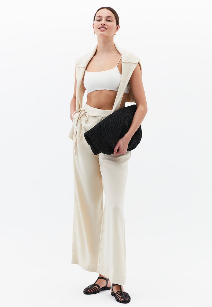 Krem Modal Ultra Yüksek Bel Straight-Fit Pantolon