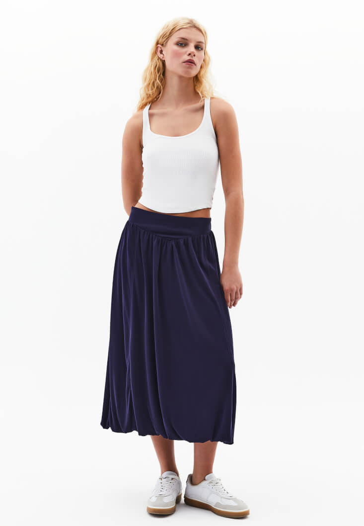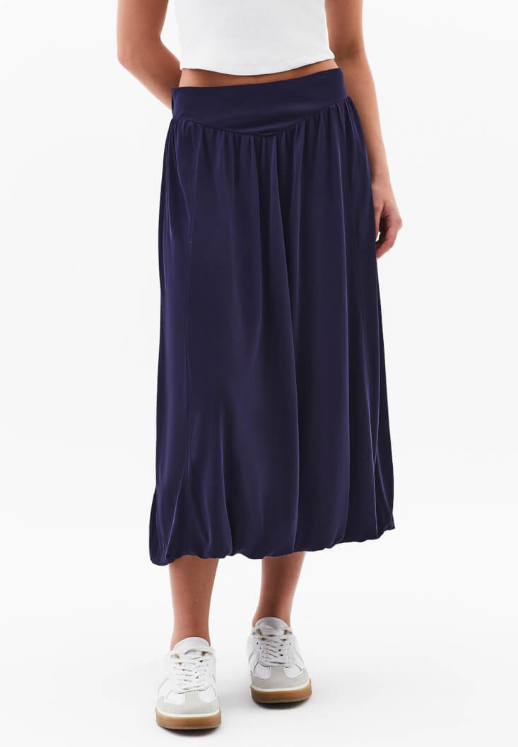 Lacivert Modal Yüksek Bel Balon Etek