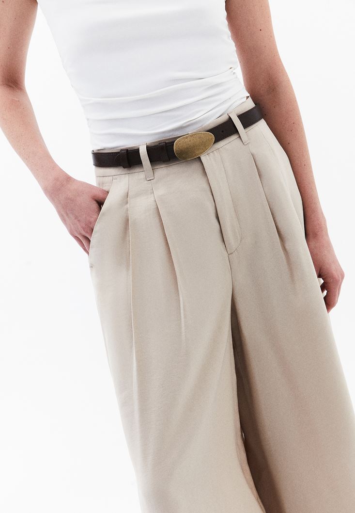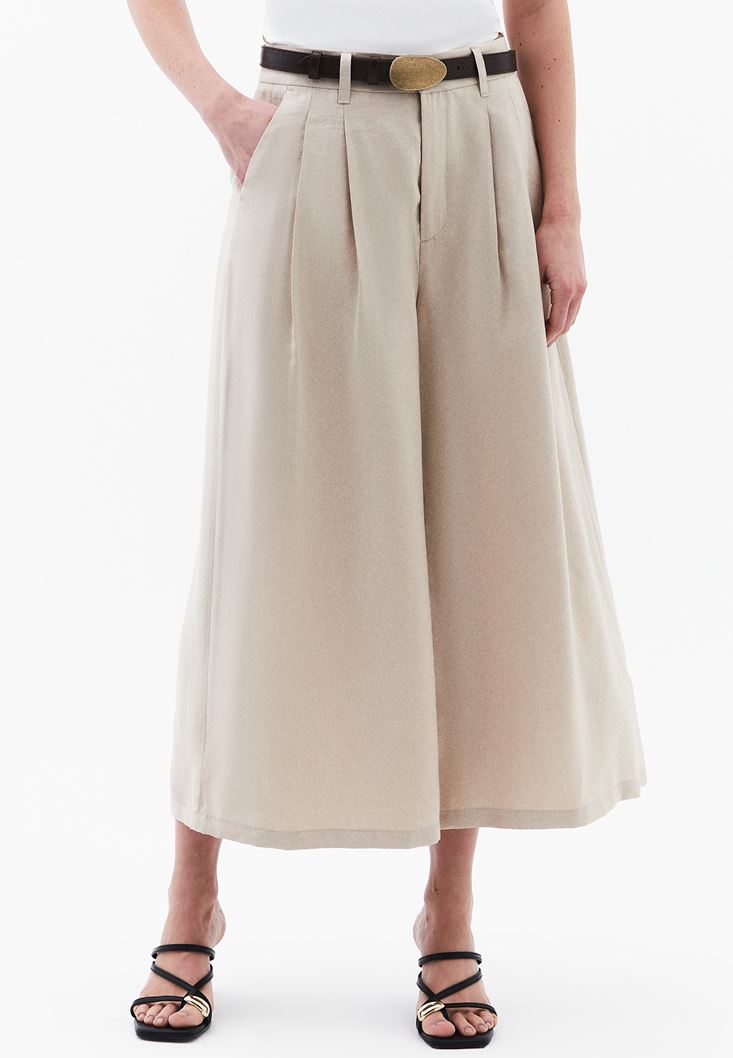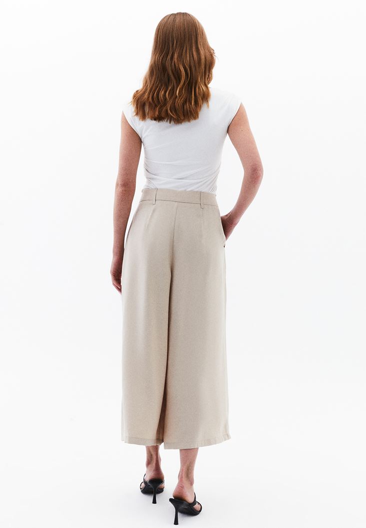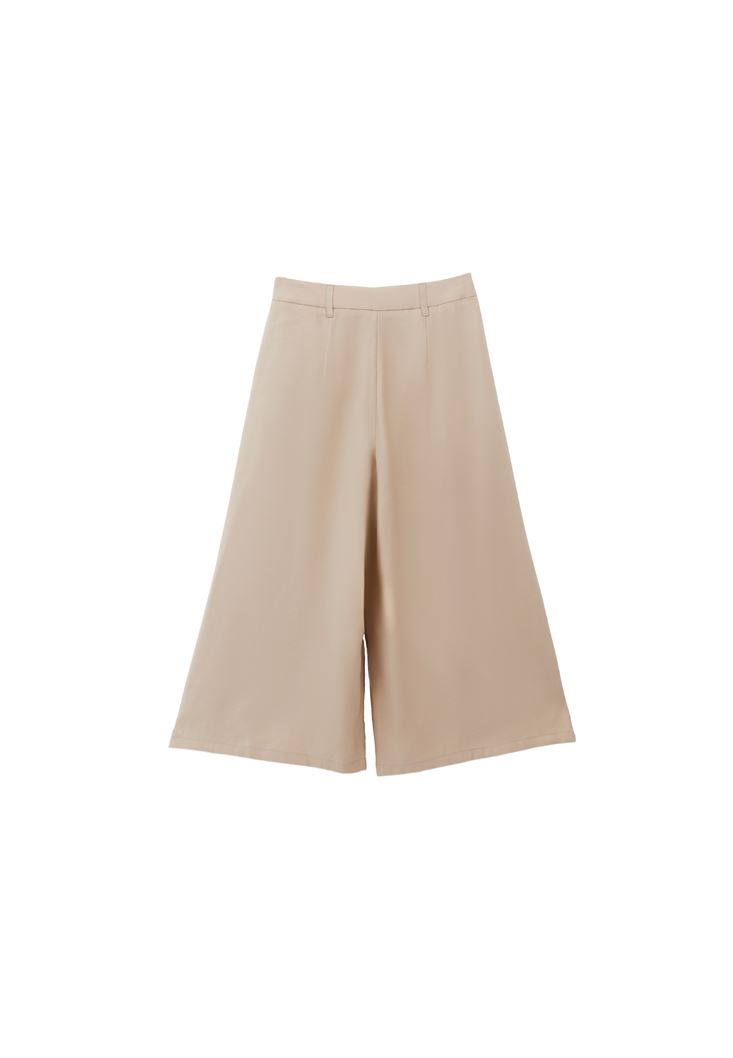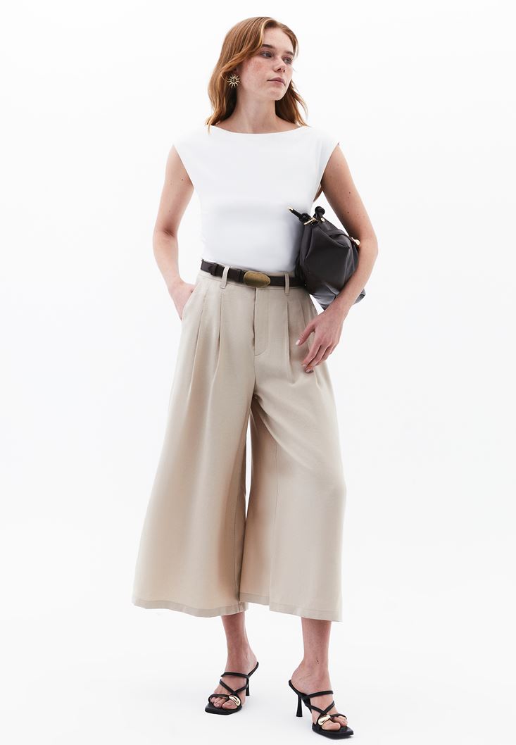Modal karışımlı ekstra yumuşak doku, yüksek bel, bedenden uzak rahat fit, culotte paça, ön kısmı pile detaylı, iki cepli.