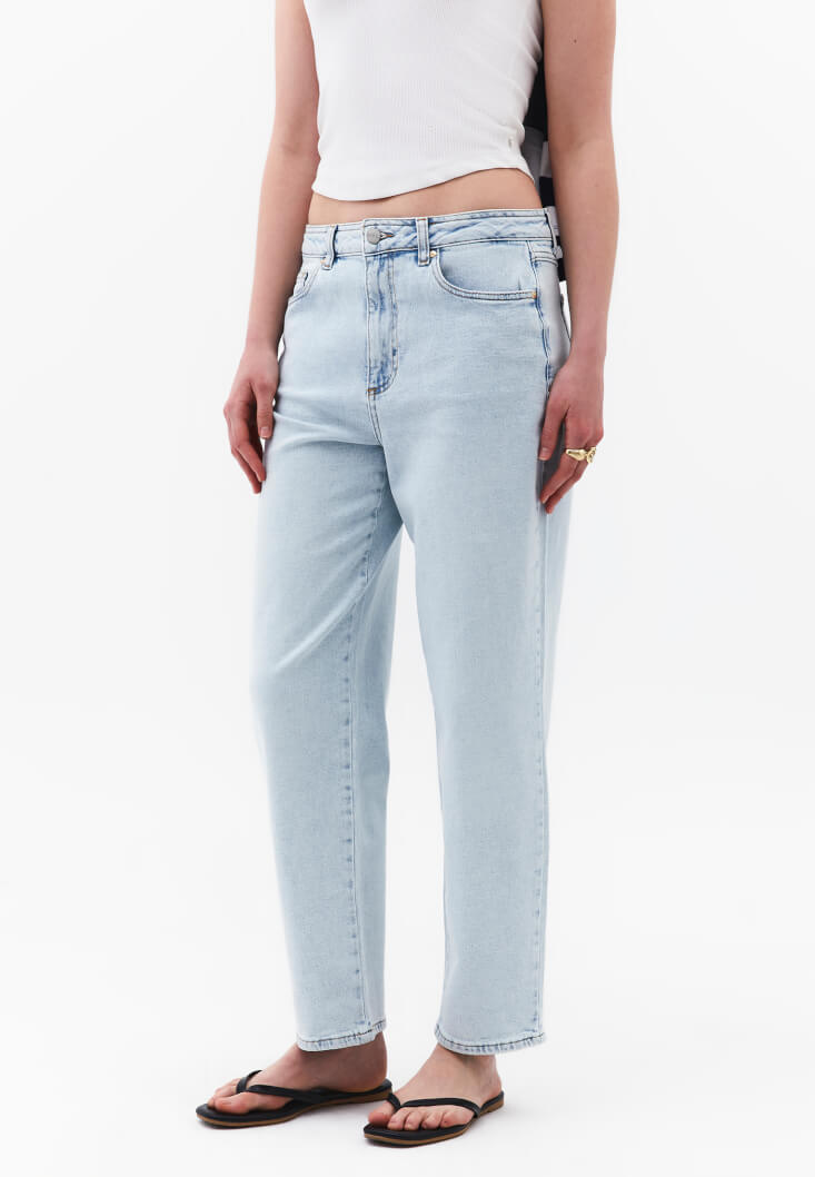 • Bayan Mavi Mom-Fit Denim Pantolon
