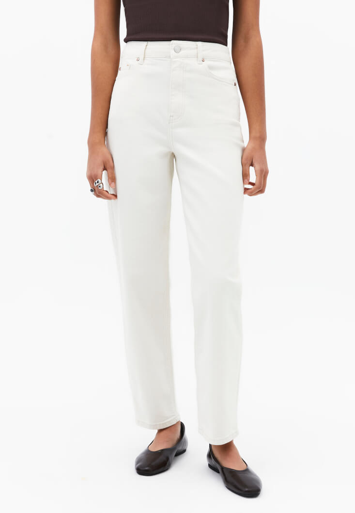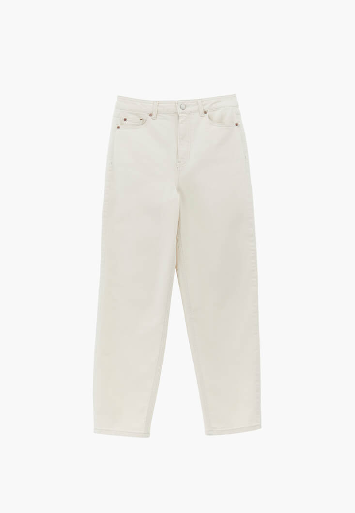 • Bayan Bej Mom-Fit Denim Pantolon