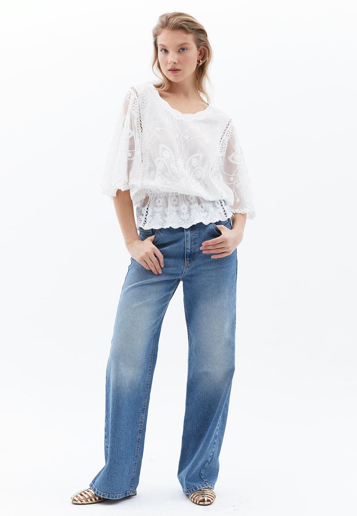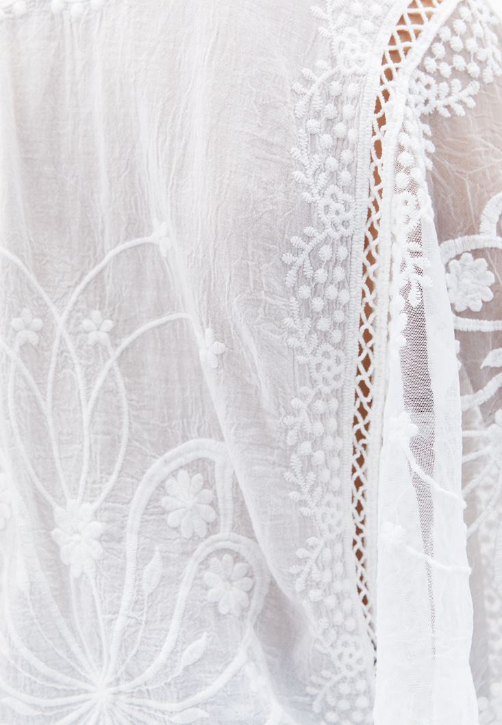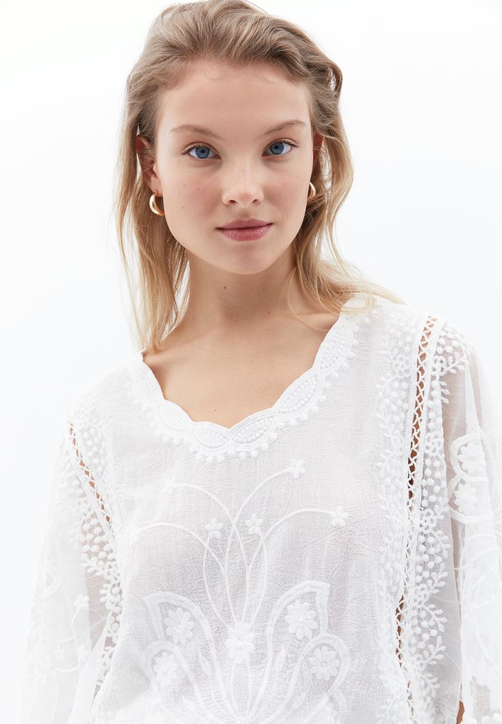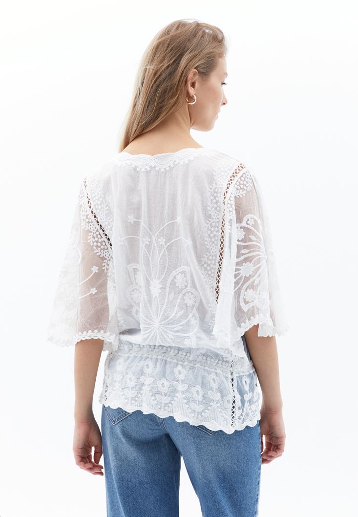 Beyaz Nakış Detaylı Bluz