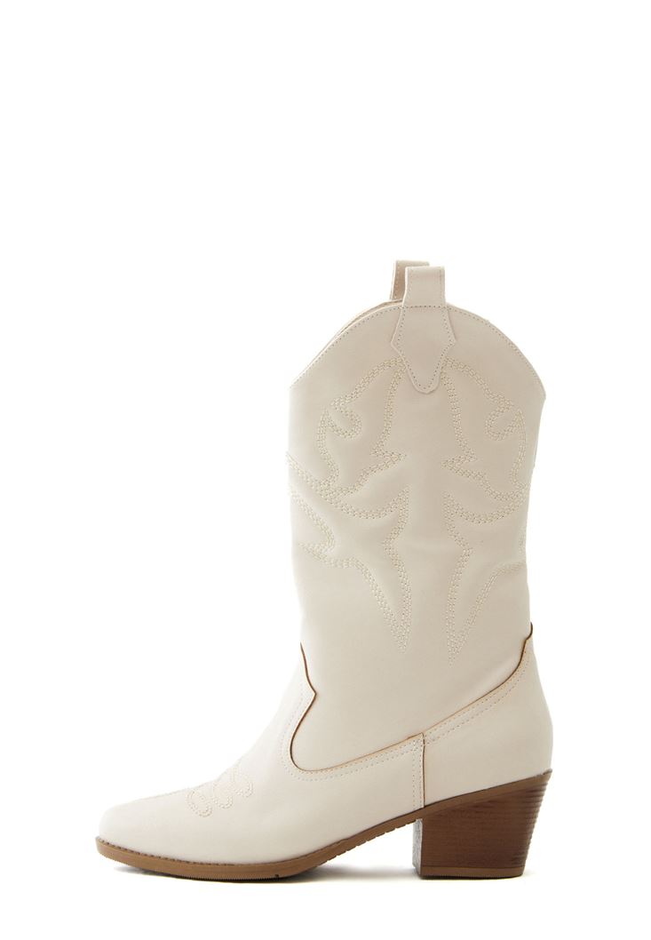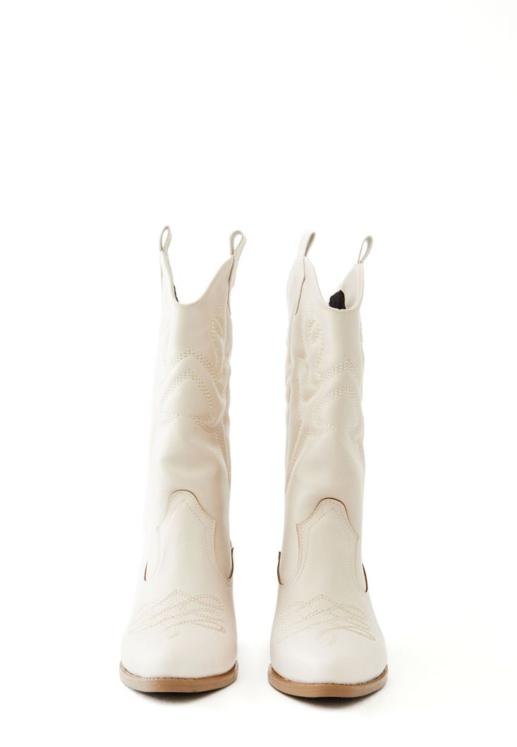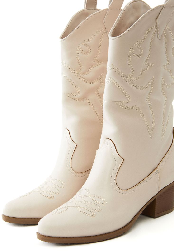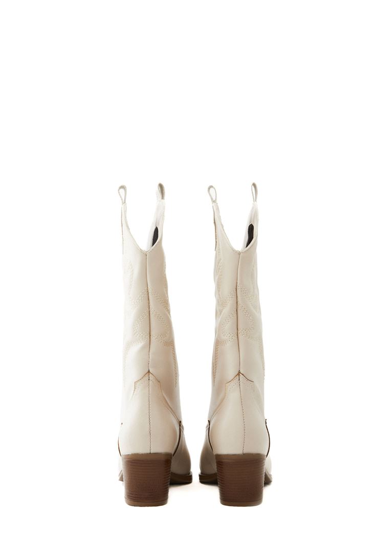 • Bayan Bej Nakış Detaylı Kovboy Bot