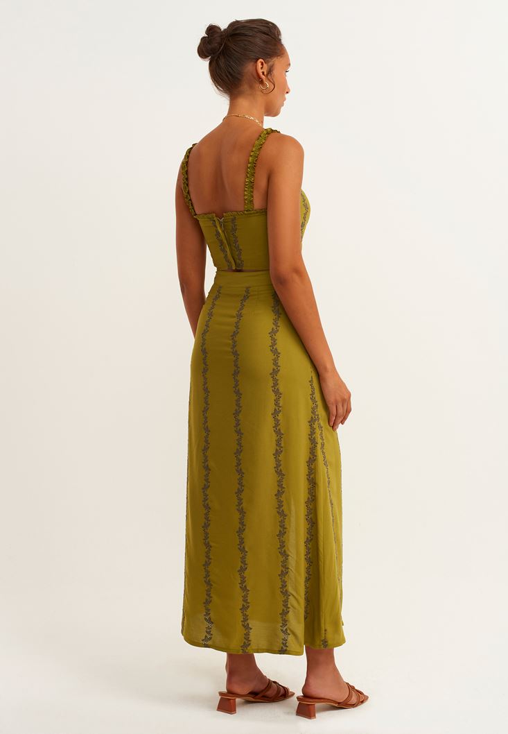 • Bayan Yeşil Nakış Detaylı Maxi Etek