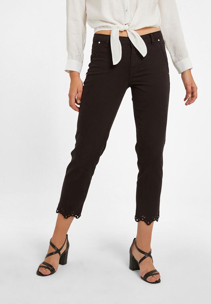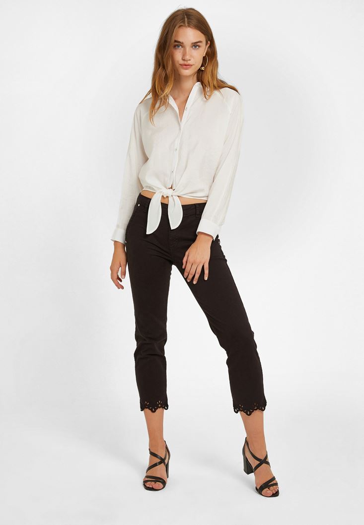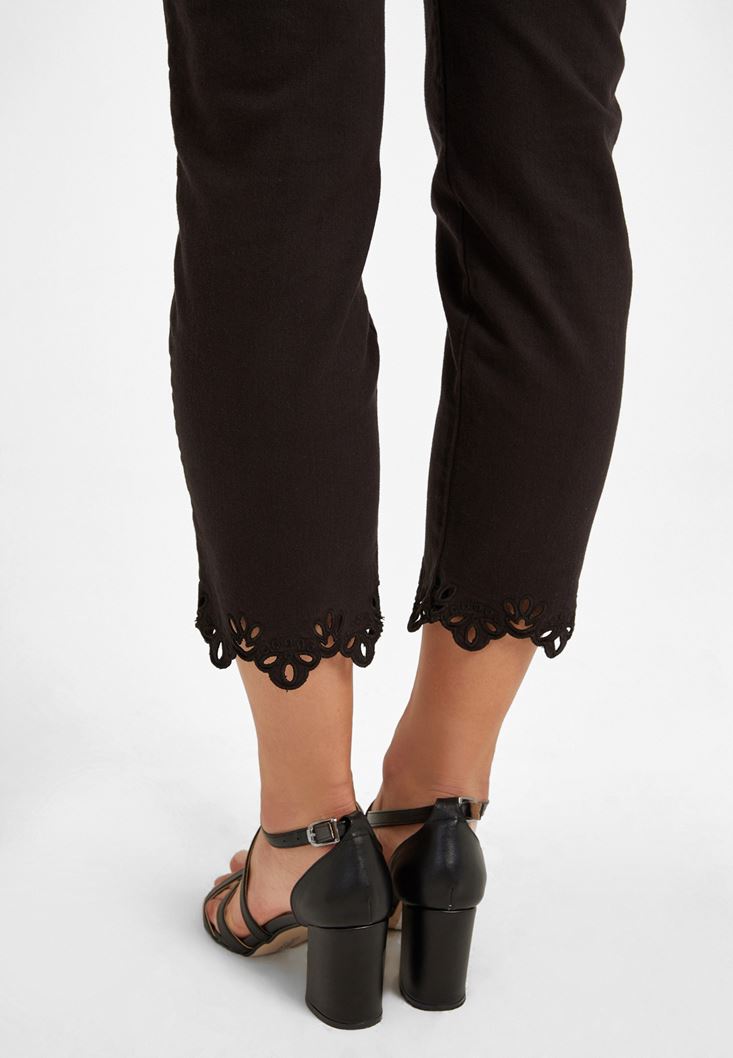 • Bayan Siyah Nakış Detaylı Orta Bel Pantolon