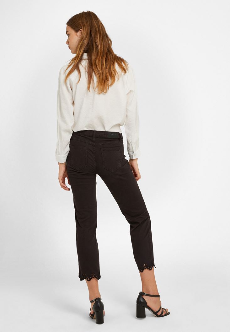 Siyah Nakış Detaylı Orta Bel Pantolon