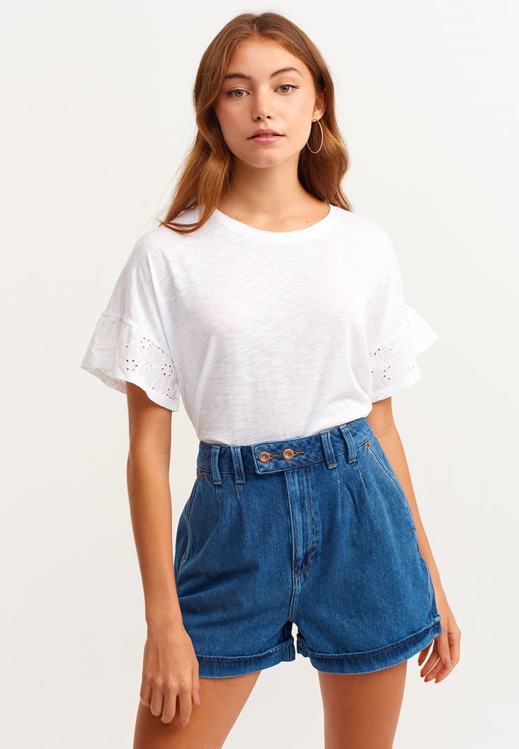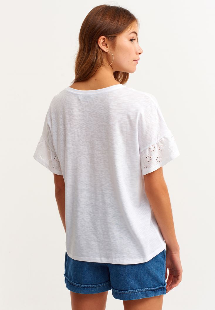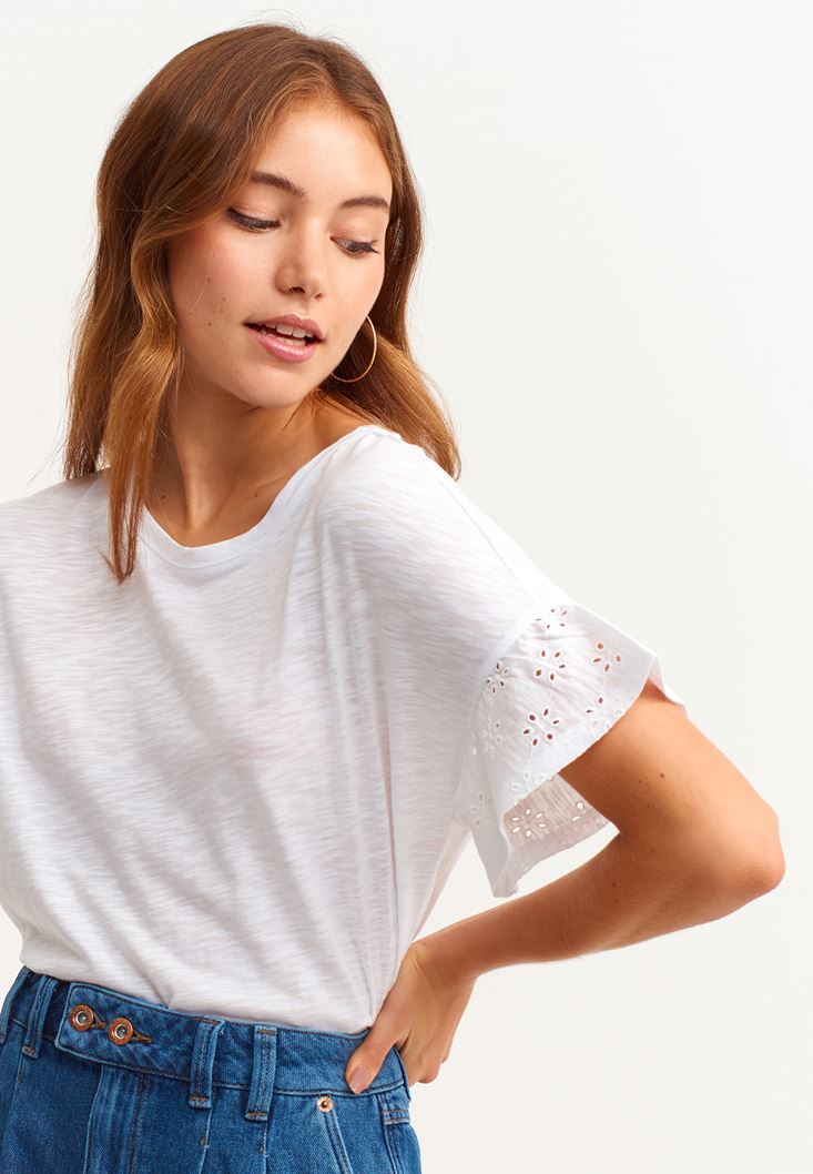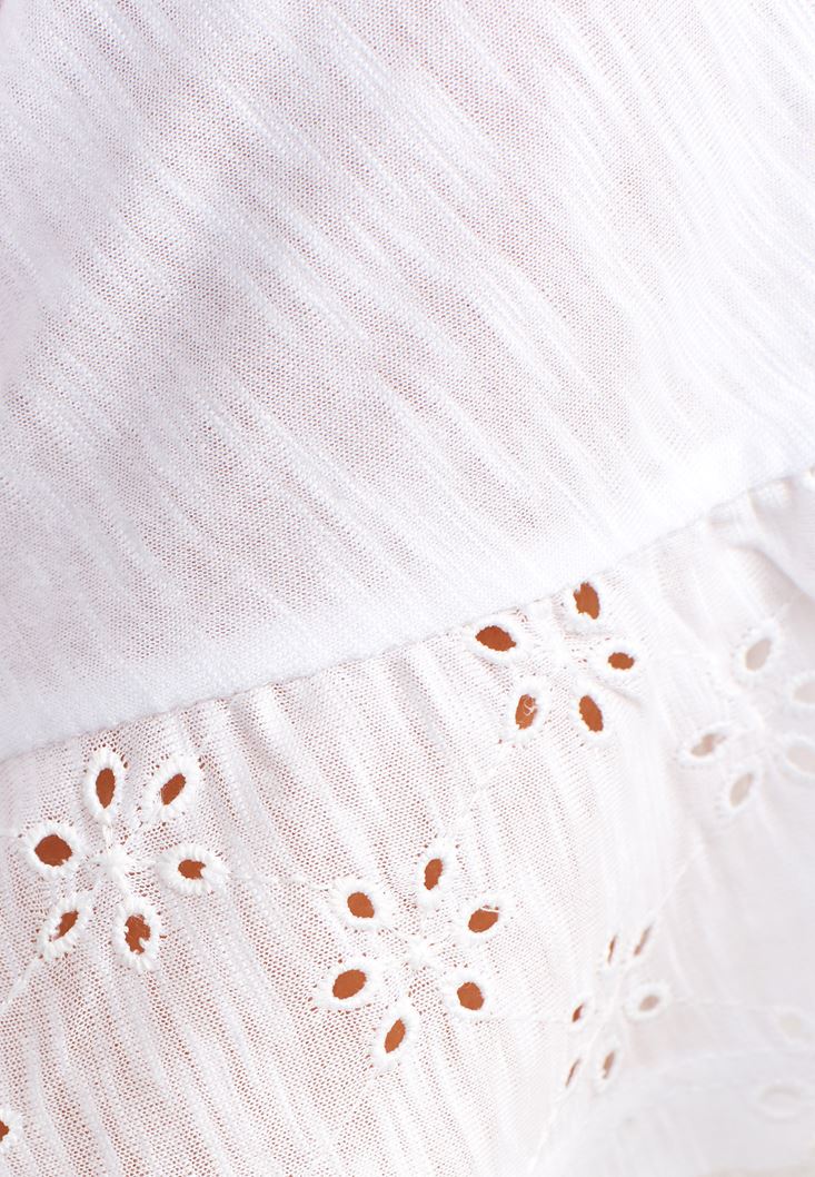 Beyaz Nakış Detaylı Romantik Tişört ( MODAL )