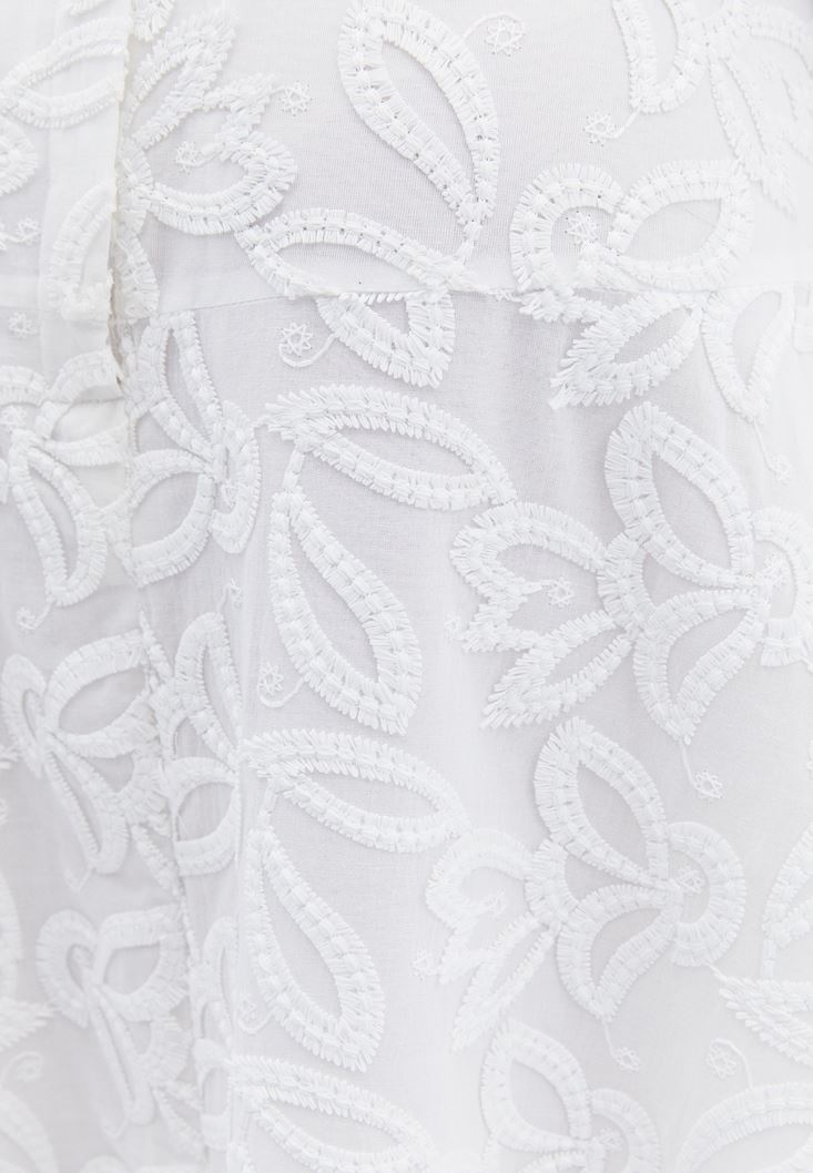 • Bayan Beyaz Nakışlı Asimetrik Midi Etek