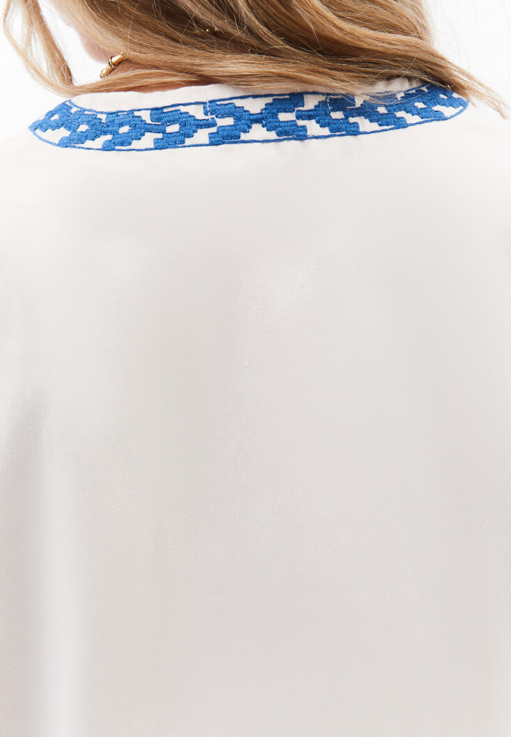 %100 pamuk içerikli doğal doku, çiçek motifli nakış, bedenden uzak rahat fit, crop kesim, içi astarlı.
