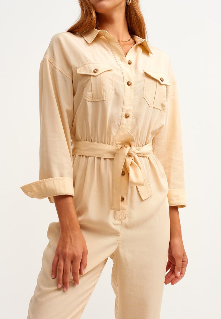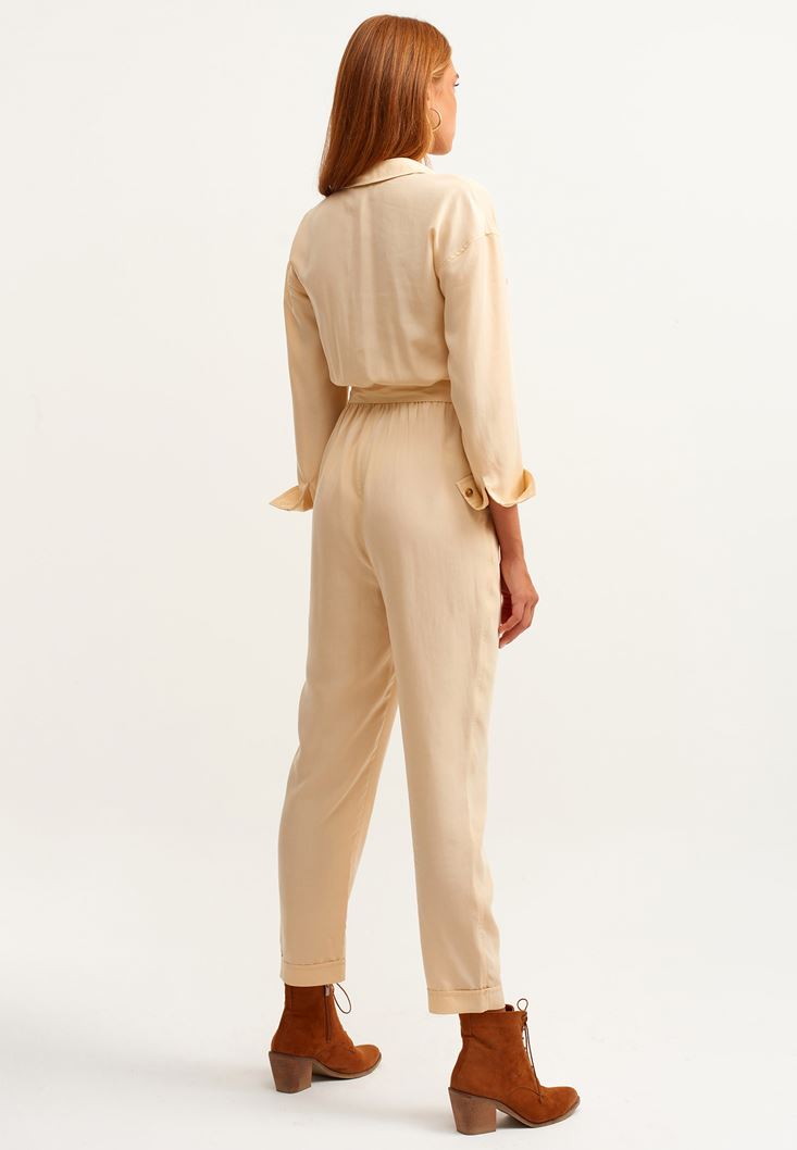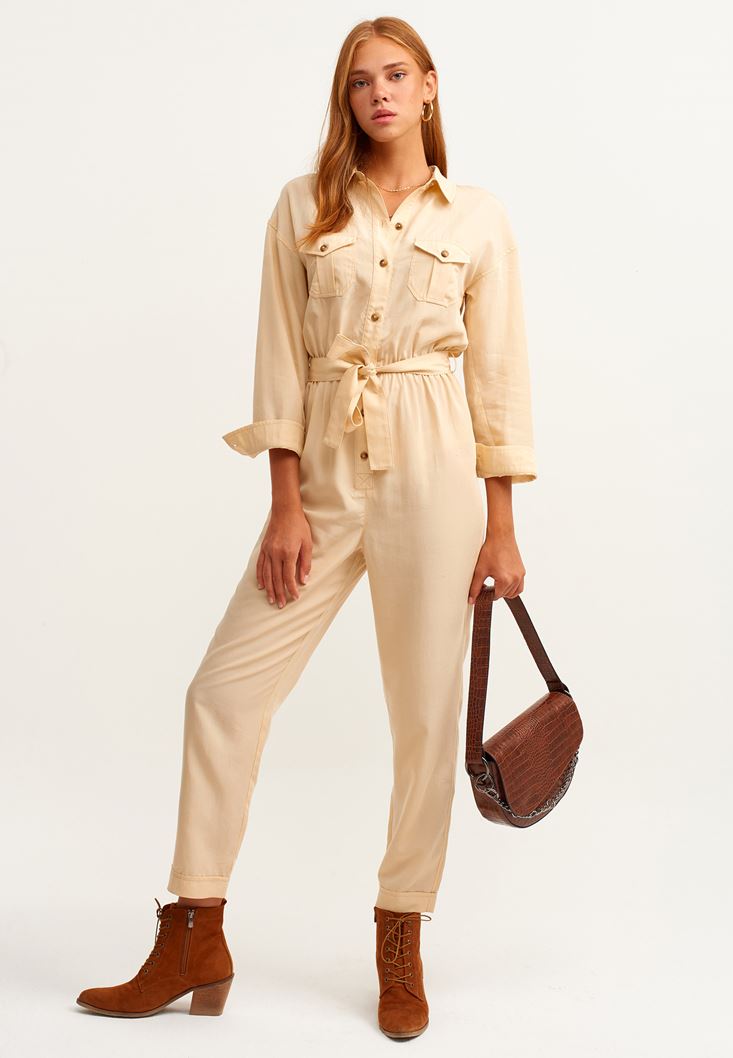 Doğa Dostu Cepli Tulum modeli. Survive koleksiyonu ile karşına çıkan bu parça senin olmayı bekliyor... Yoğun bir iş gününü, tulum modeli ile rahatlıkla bitirebilir ve ardından geceye kadar uzayan buluşmalara en iyi şekilde dahil olabilirsin. Güçlü ve doğadan ilham alan detaylarıyla hoşuna gidebilecek olan bu cepli tulum ile özgürlüğünü ilan etmeye çok yakınsın! :)