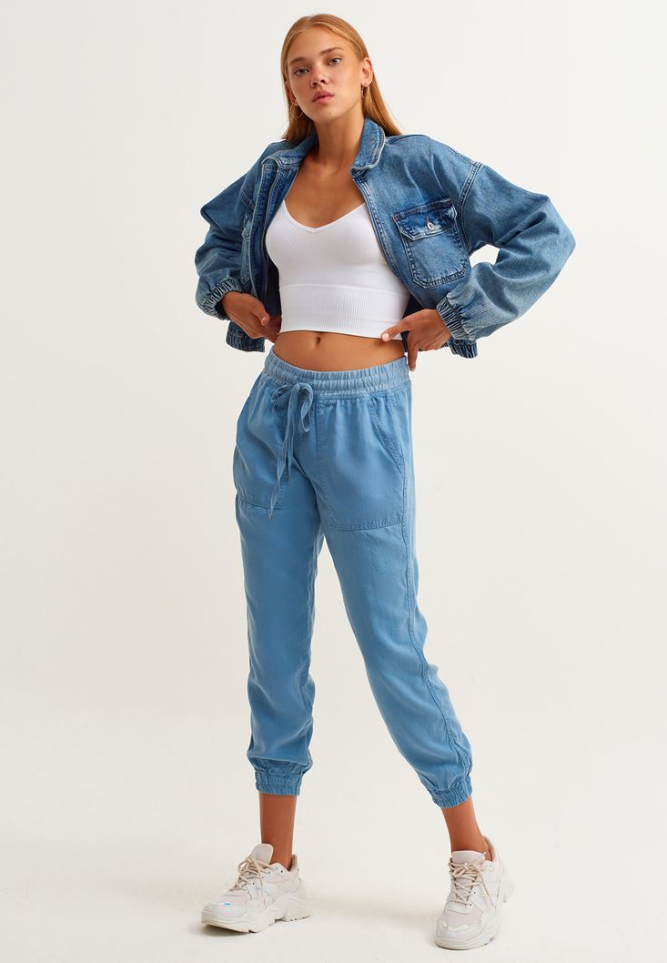 Nature Friendly Jogger Pantolon ve Denim Crop Ceket Kombini