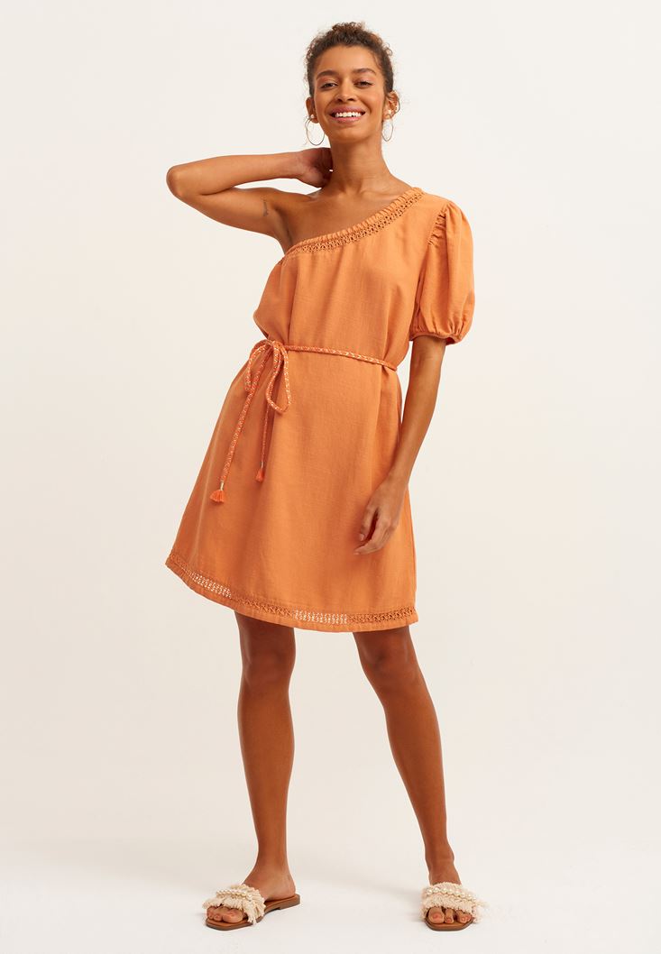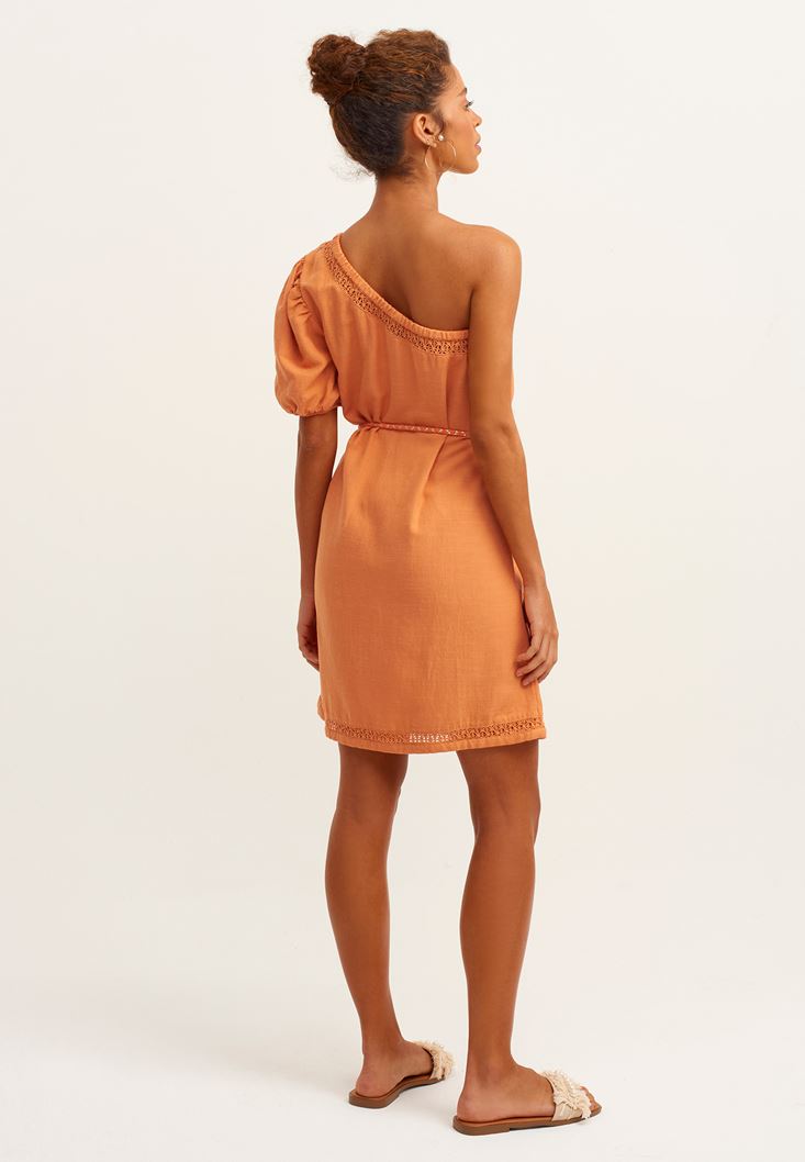 Turuncu Nature Friendly Tek Omuz Mini Elbise
