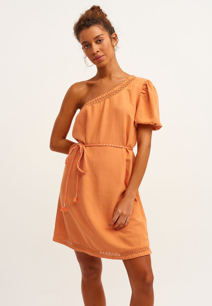 • Bayan Turuncu Nature Friendly Tek Omuz Mini Elbise