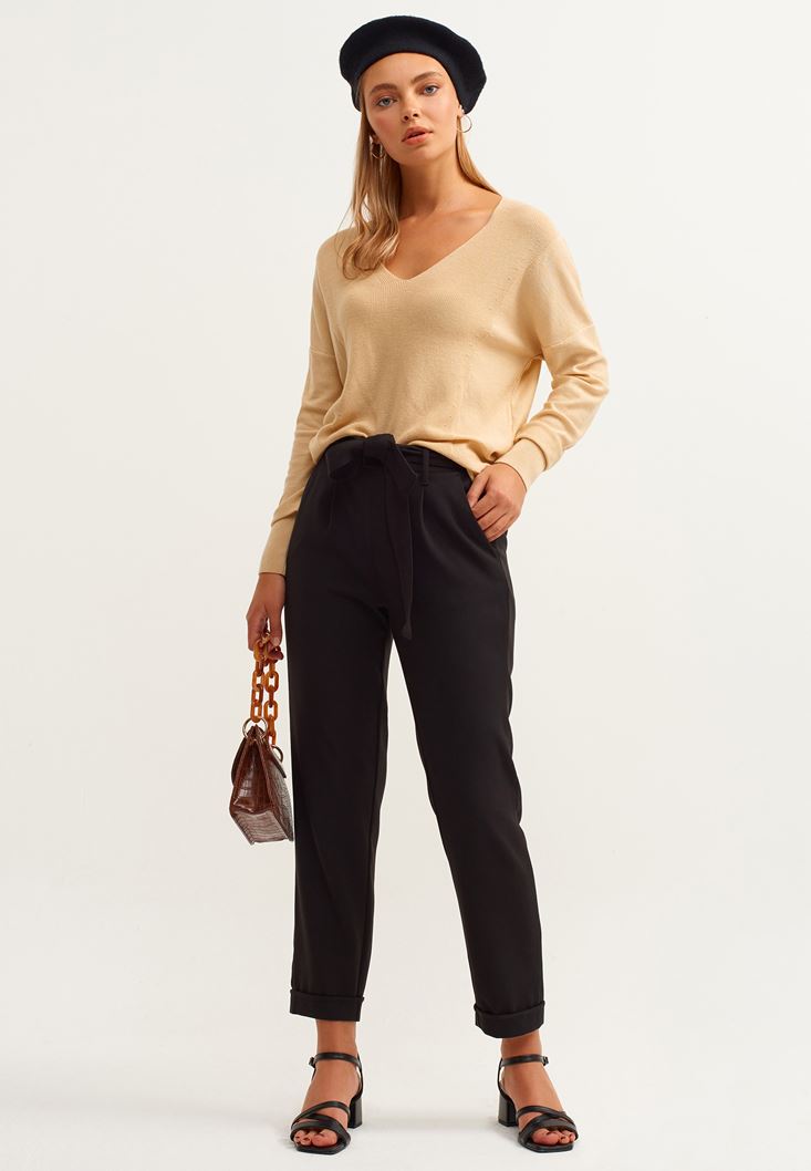 • Bayan Bej Nature Friendly V-Neck Triko ( TENCEL™ )