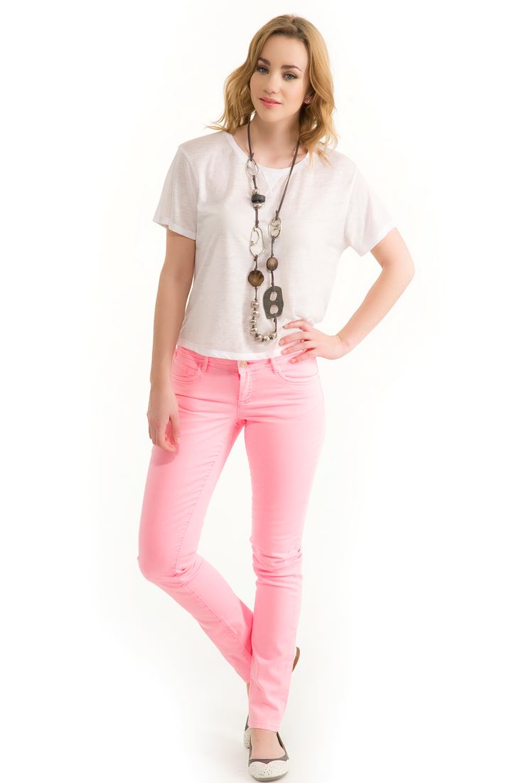 Pembe Neon Dar Kesim Pantolon