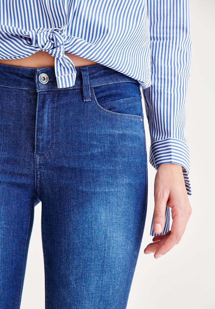 Normal bel yüksekligi denim pantolon modeli sade ve klasik bir siklik elde etmenizi saglayacak. Günlük kombinlerinizde rahatlikla kullanabileceginiz pantolon modelini dilerseniz sokak modasini yansitan kombinler yaparken de tercih edebilirsiniz. Hos bir renk degisimi yansitan pantolon modeli sahip oldugu pamuk dokusu ile konforlu bir siklik sunuyor. Triko, gömlek ve bluz modelleri ile birlikte rahatlikla kullanabileceginiz pantolon modeli ile farkli kombinler yapabilirsiniz. Kisa paça boyu ile kombinlerde kullanilan ayakkabilari ön plana çikaran tasarim ile tarzinizi dikkat çekici bir seviyeye tasiyabilirsiniz. OXXO pantolon modelleri için dokulardan ve renk geçislerinden ilham alirken ayni zamanda özgün bir siklik elde etmenizi sagliyor. Siz de tarzinizi ön plana çikarmak istediginiz zaman pantolon modelleri ile yapabileceginiz sinirsiz kombinleri degerlendirebilirsiniz.