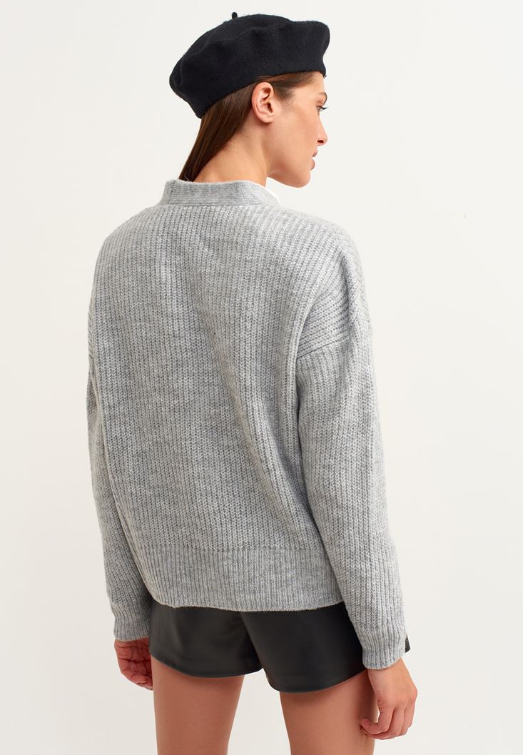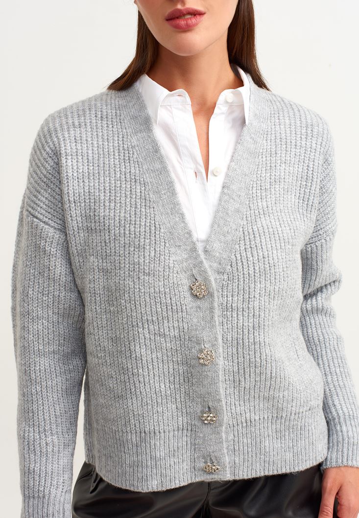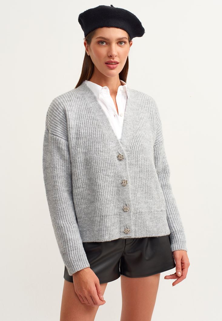 Gri Nostaljik Düğmeli Hırka