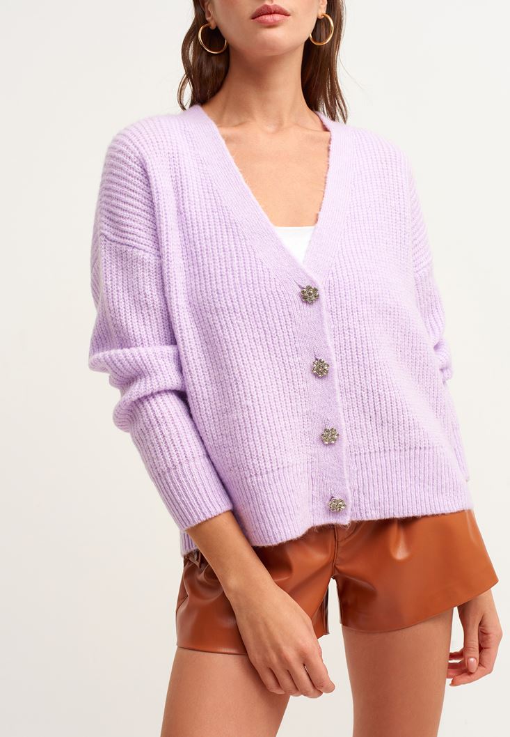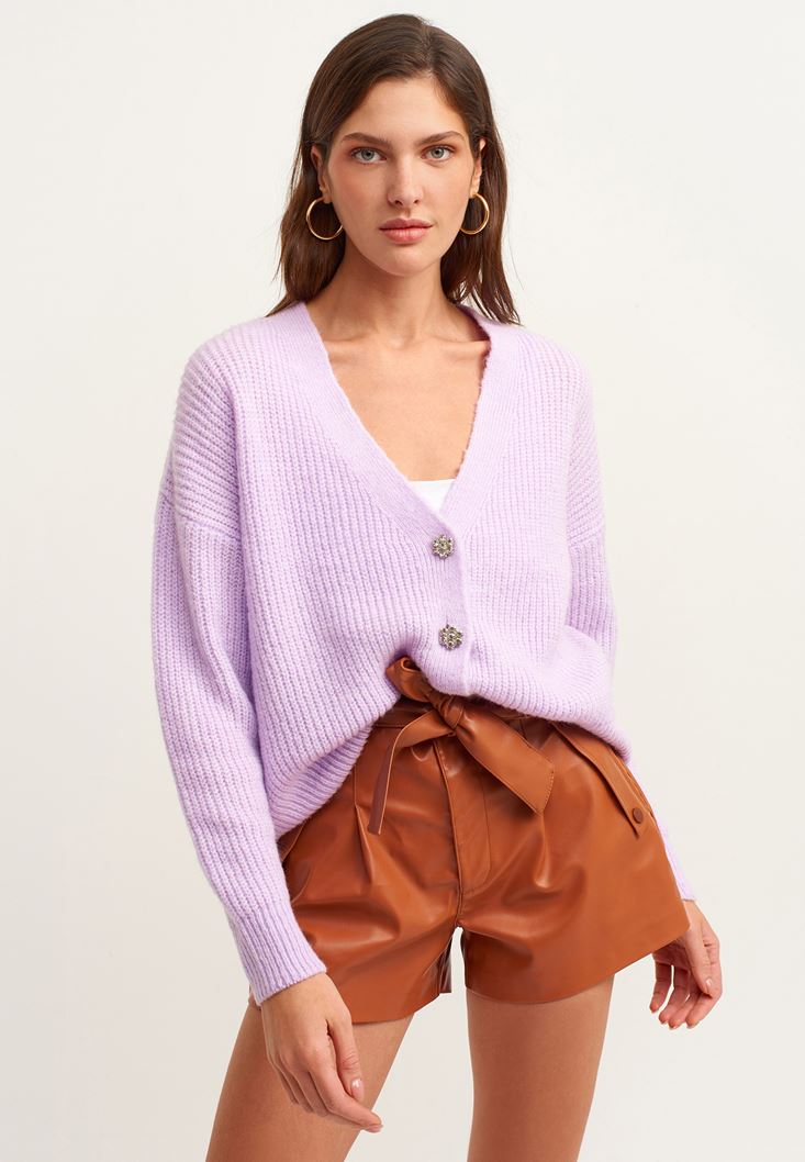 • Bayan Mor Nostaljik Düğmeli Hırka