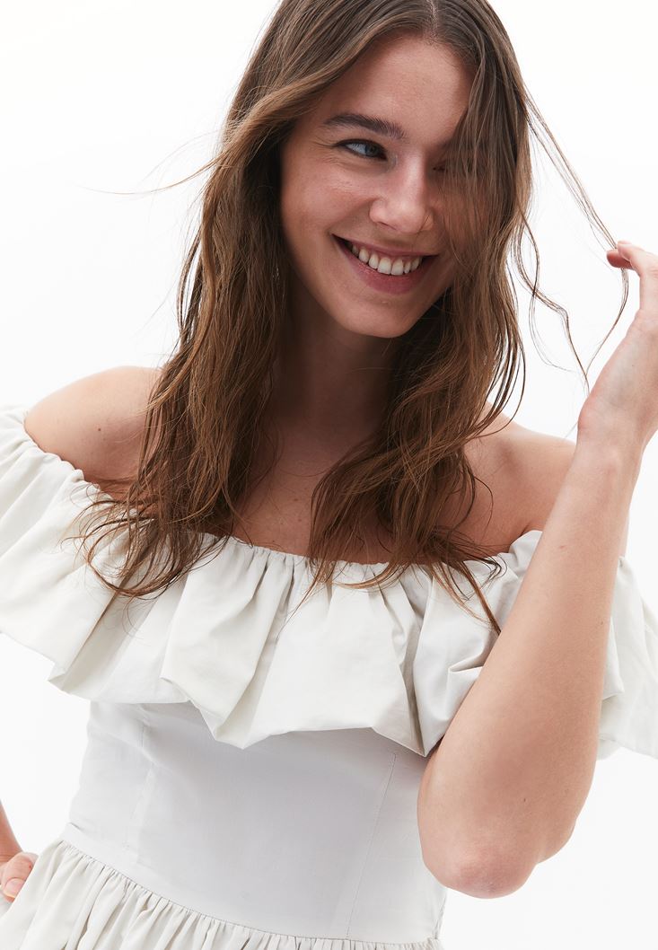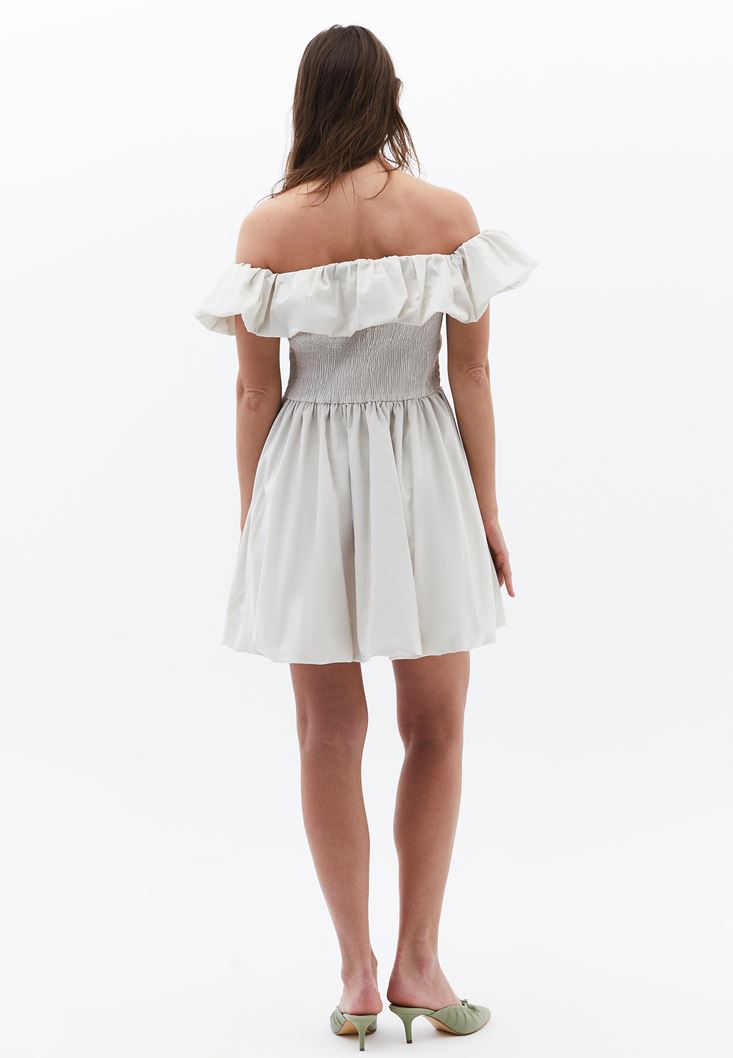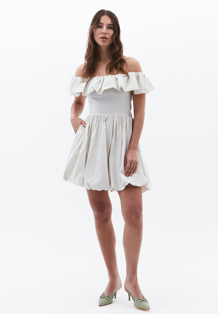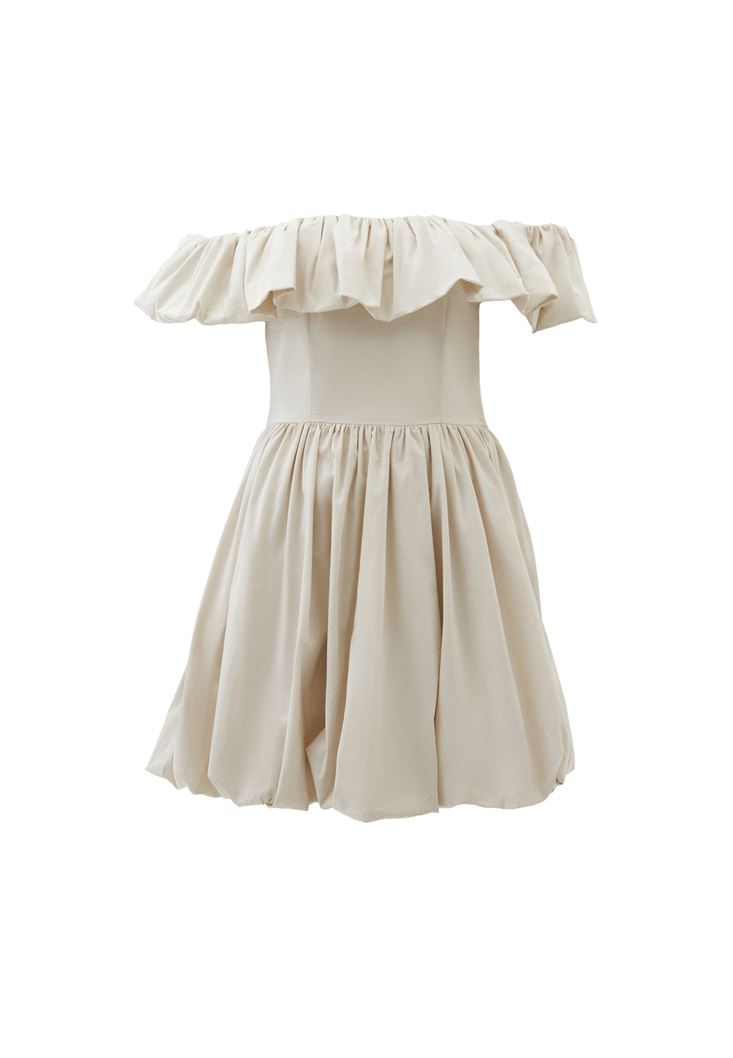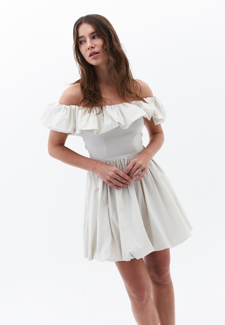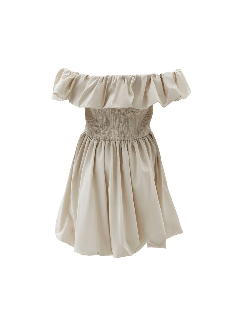 • Bayan Krem Omuz Açık Mini Balon Elbise