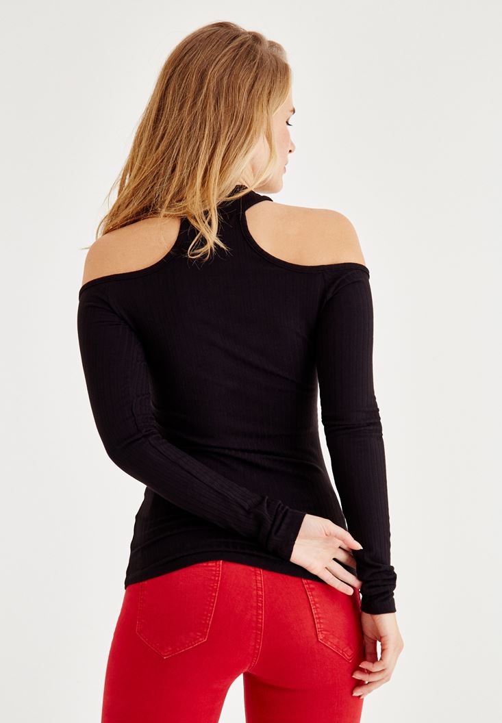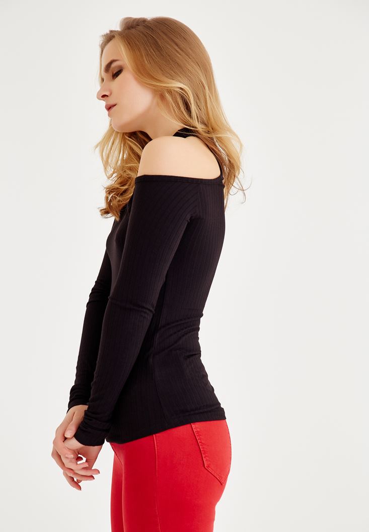 Siyah Omuz Dekolteli Halka Detaylı Bluz