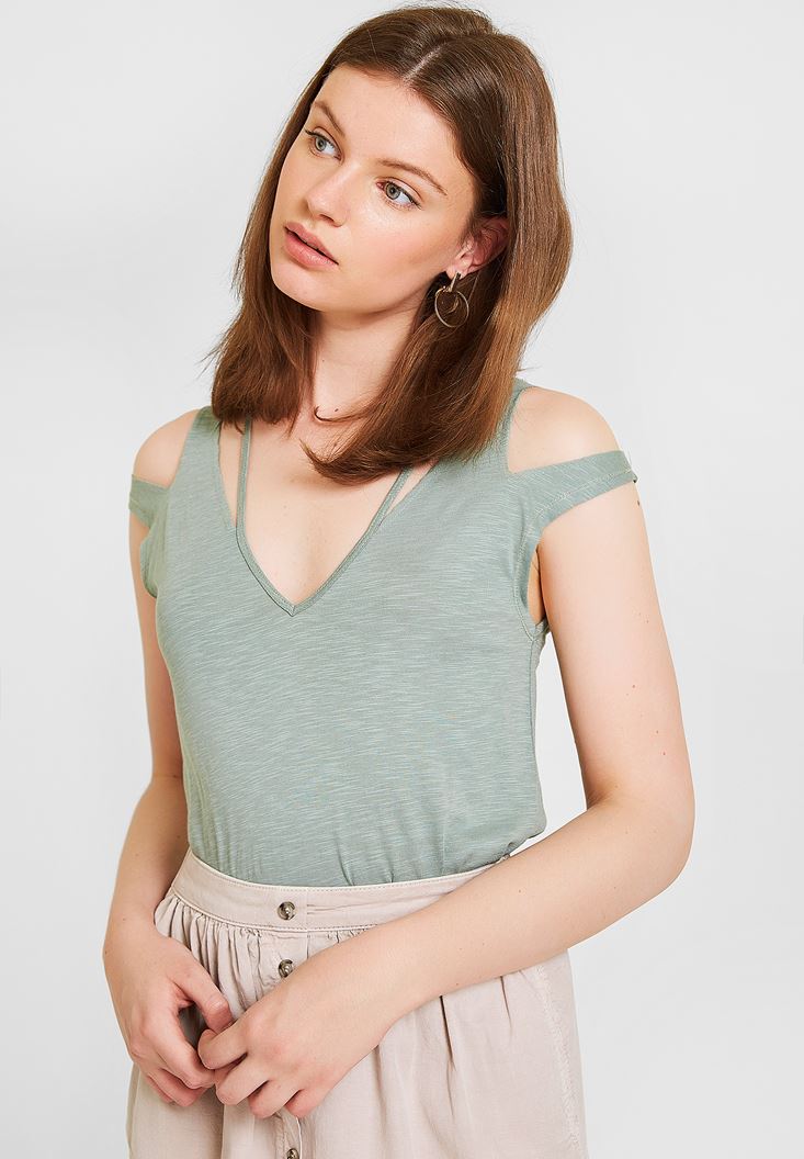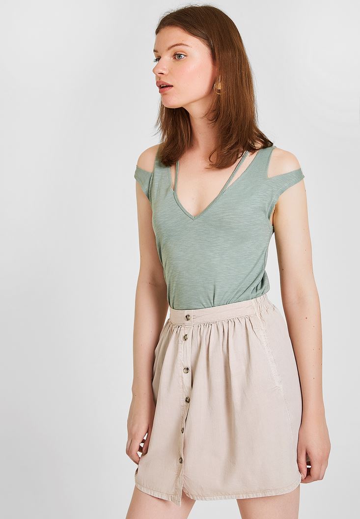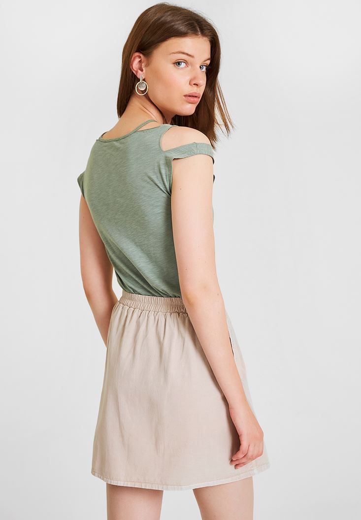 • Bayan Yeşil Omuz Detaylı Biyeli Tişört