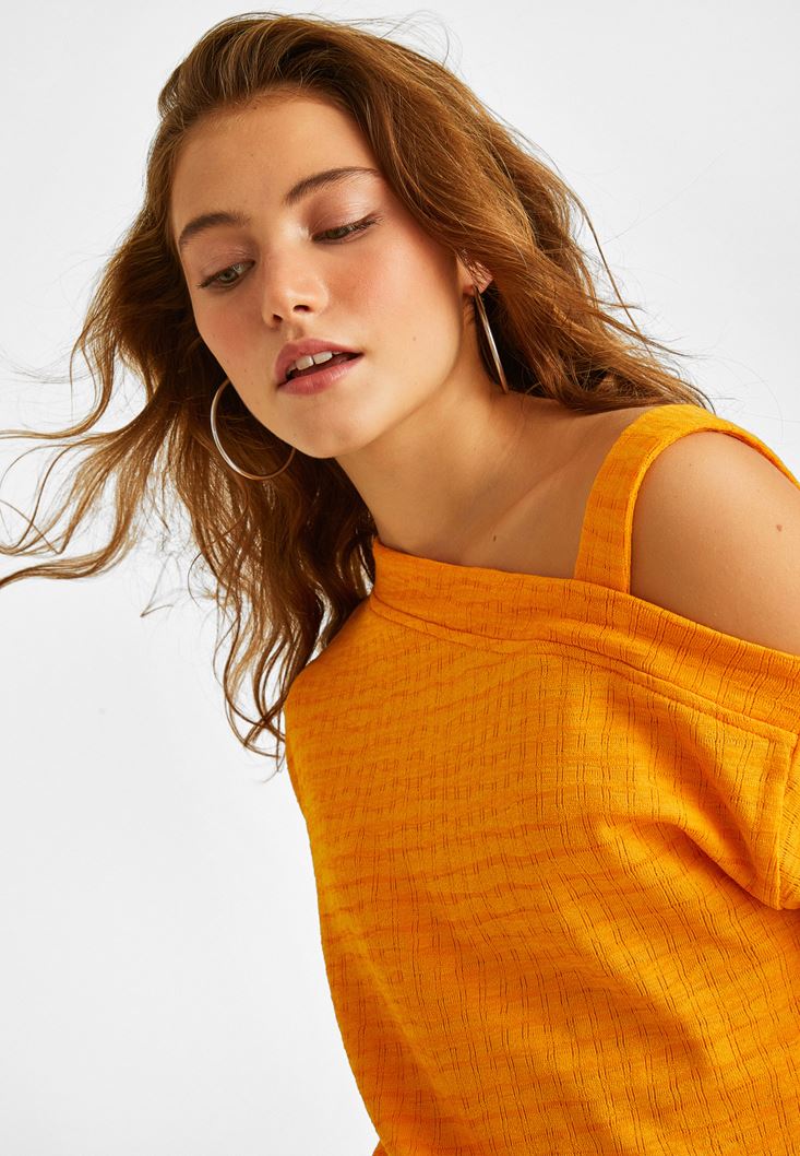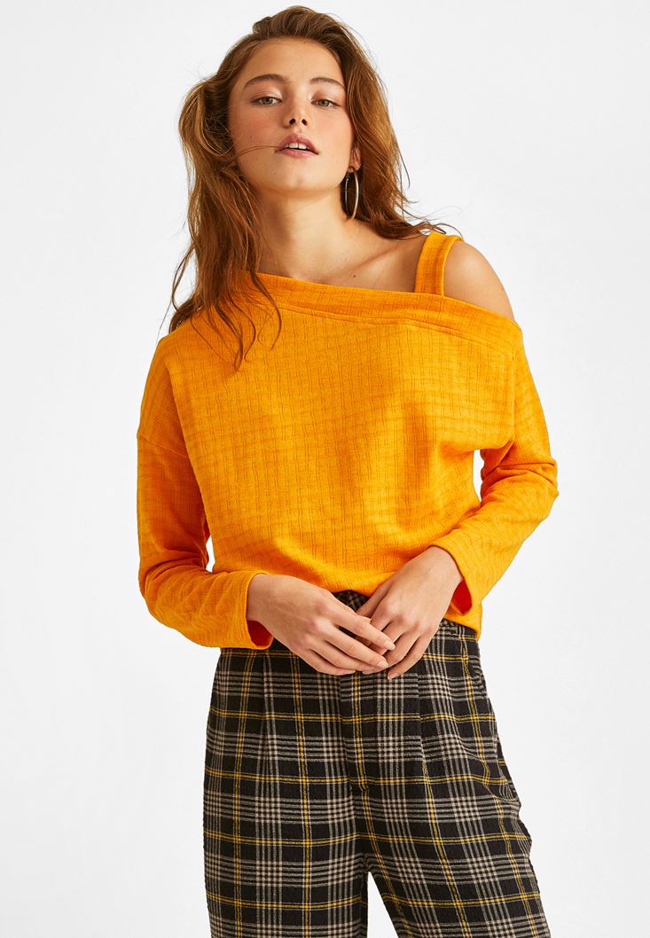 Turuncu Omuz Detaylı Bluz