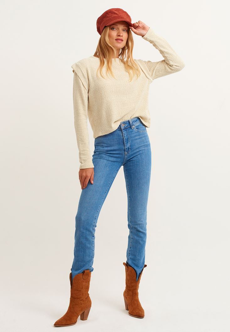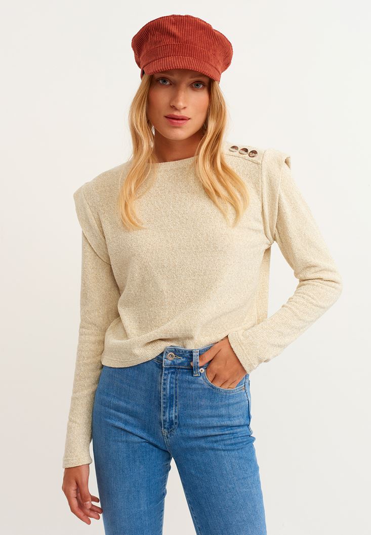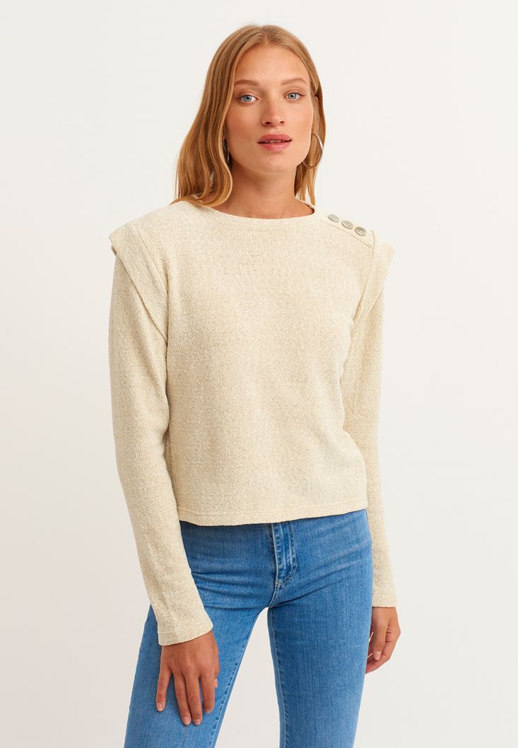 Açık Krem Omuz Detaylı Şönil Triko