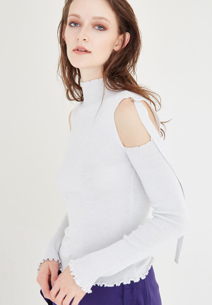 • Bayan Beyaz Omuz Detaylı Triko Kazak