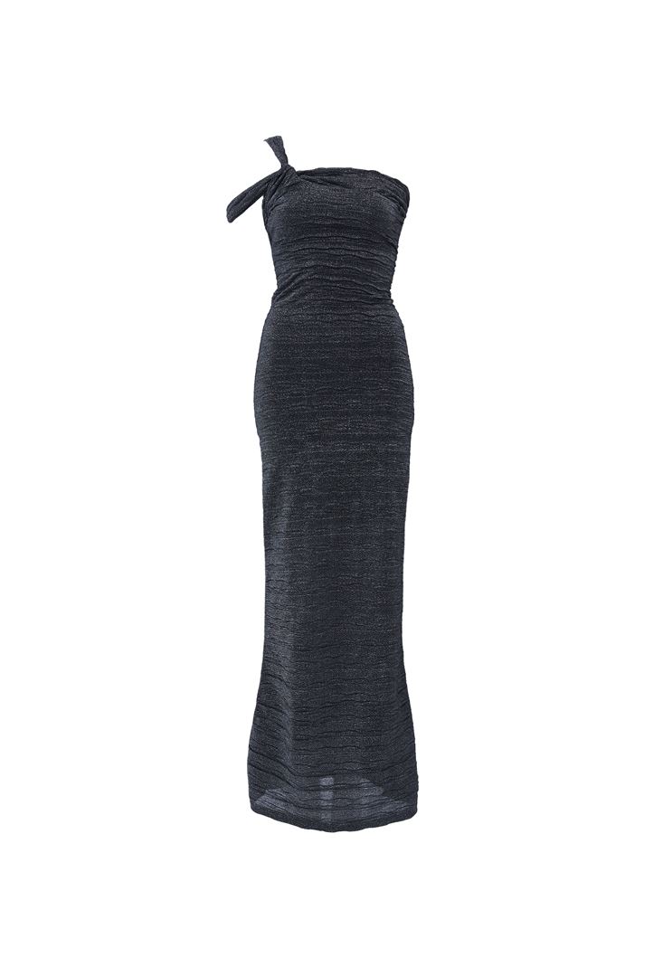 Parıltıya izin verin… Işıltınıza ışıltı katacak olan uzun elbise modeliyle bu mümkün! Tek omuz detaylı elbise modelinin parıltılı dokusu ve burgulu askı detayı sayesinde mükemmel bir zarafet yakalayabilirsiniz. Katılacağınız özel davetler veya kutlamalar için ideal seçenek olan uzun elbise modelini; topuklu ayakkabılarla desteklerken, küpe ve bileklik gibi aksesuarlarla kombininizi tamamlayabilirsiniz.🥰