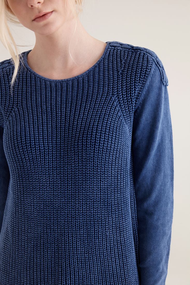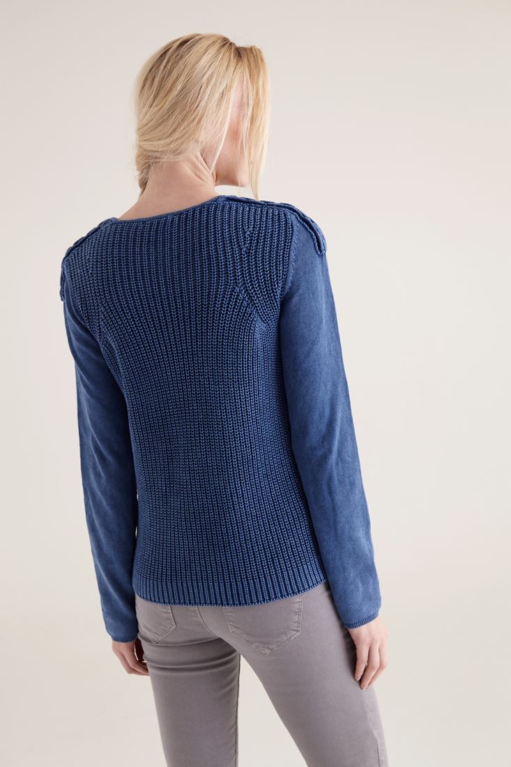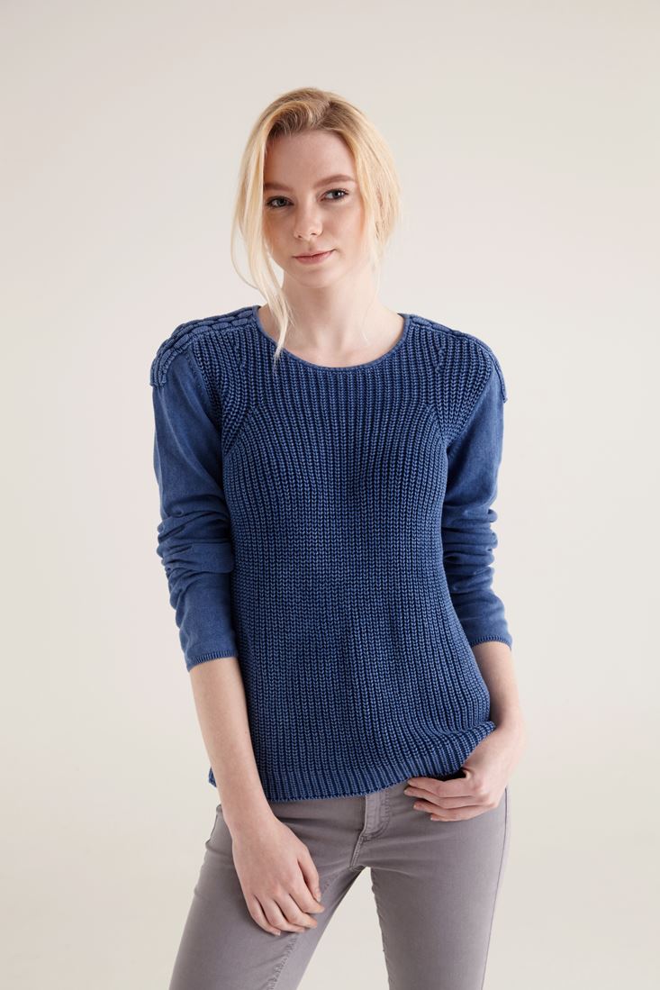 Mavi Omuz Detaylı Yıkamalı Triko