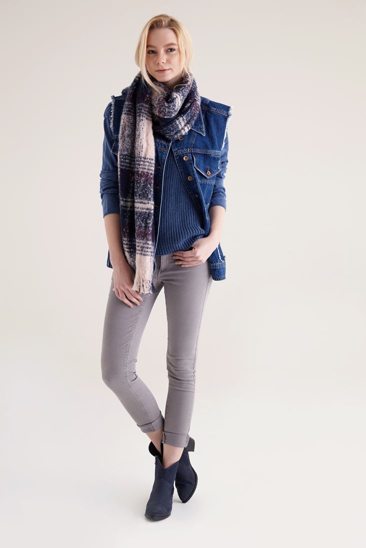 • Bayan Mavi Omuz Detaylı Yıkamalı Triko