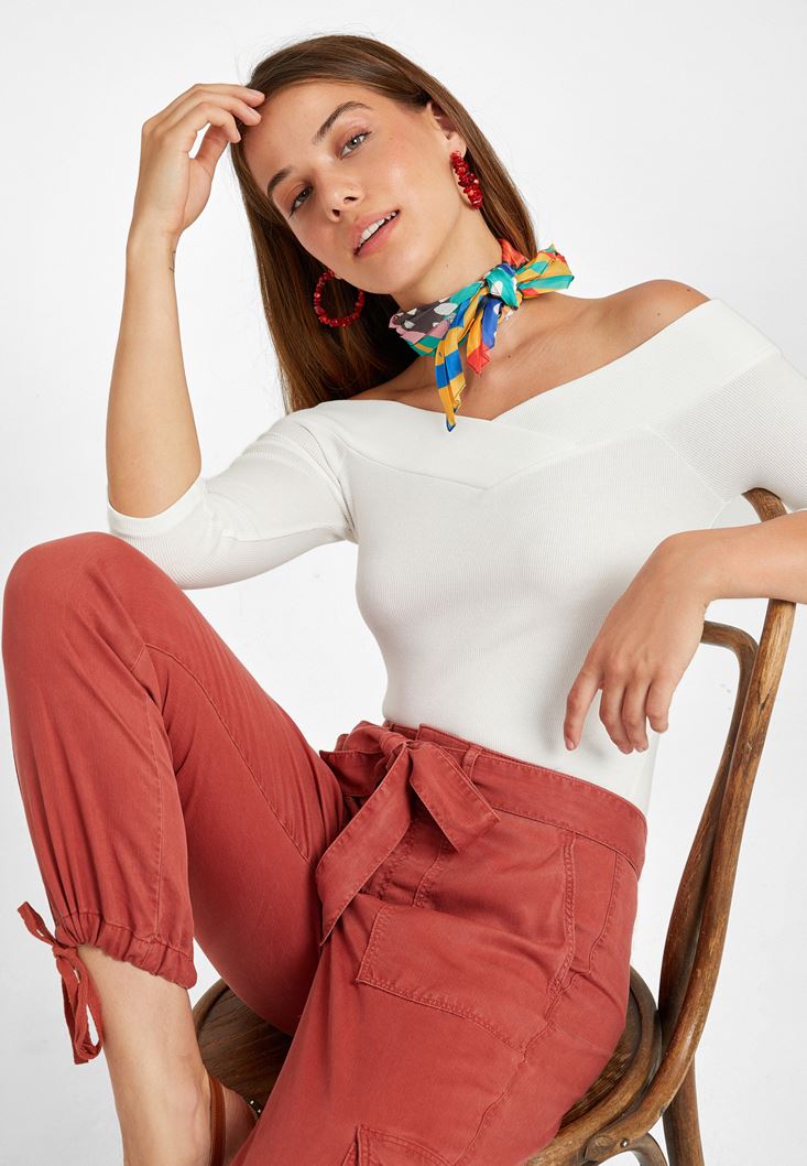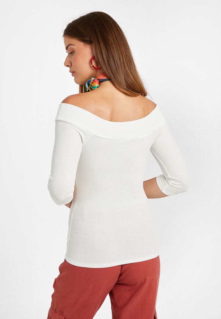 Omuzları Açık Bluz modeli vücudu saran yapısı, yumuşak dokusu ve tarz duruşu ile kombinlerinizde kullanmaktan keyif alacağınız kurtarıcı parçalardan birisi olacak. OXXO ruhunu yansıtan Kadın bluz modelinin geniş kayık yaka kesimi sayesinde ortaya çıkan zarif boyun ve omuz dekoltesi bu parçayı farklı boyun aksesuarları ile kullanabilmeyi mümkün kılıyor. Yarım kol boyu, yaka ve kol kesiminde kullanılan biye detayları ile güçlü bir duruşa sahip olan kadın bluz modelini hem jean hem de kumaş pantolon modelleri ile birlikte rahatça kombinleyebilirsiniz. Sahip olduğu pamuk dokusu sayesinde oldukça yüksek bir kullanım konforu sunan omuzları açık bluz modeli bu dokunun nefes alan yapısı sayesinde gün boyu rahat hissetmenizi sağlıyor.