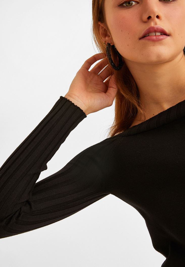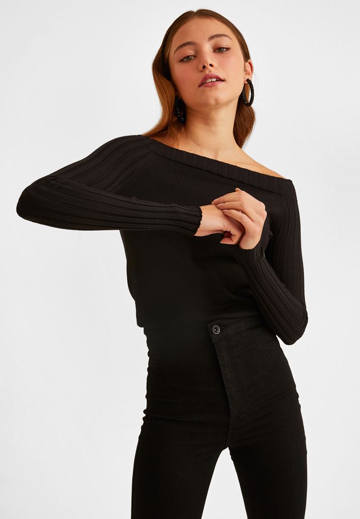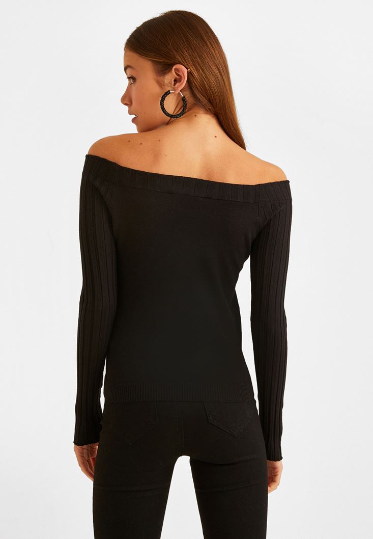 • Bayan Siyah Omuzları Düşük Triko Kazak
