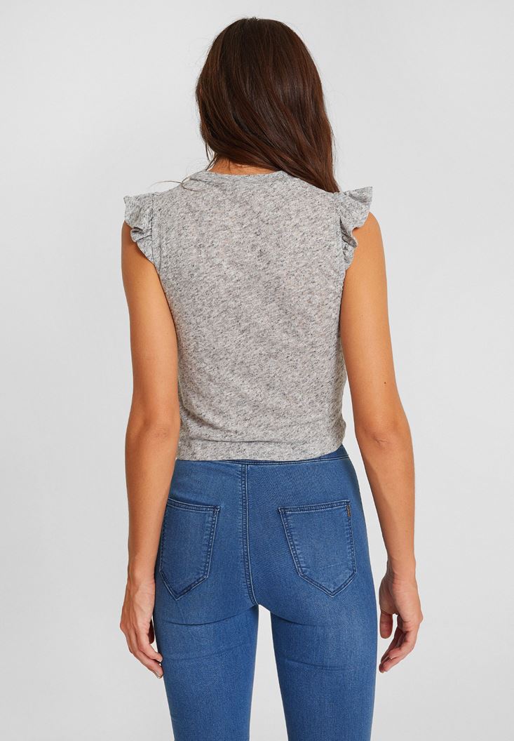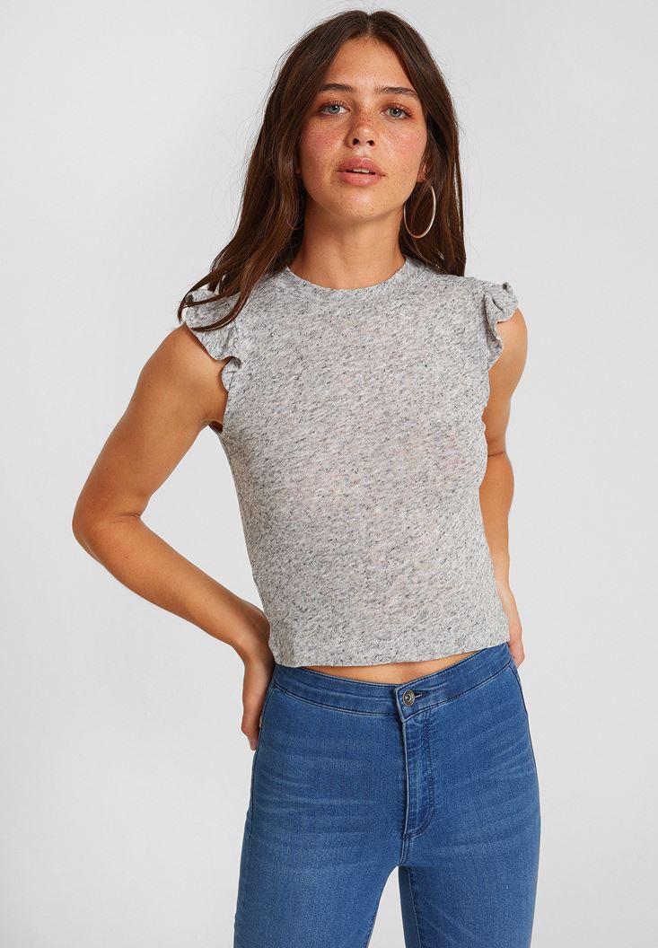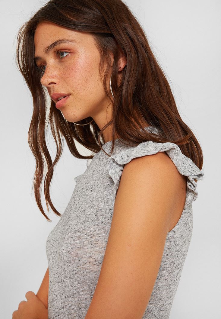 • Bayan Gri Omuzları Fırfırlı Bluz