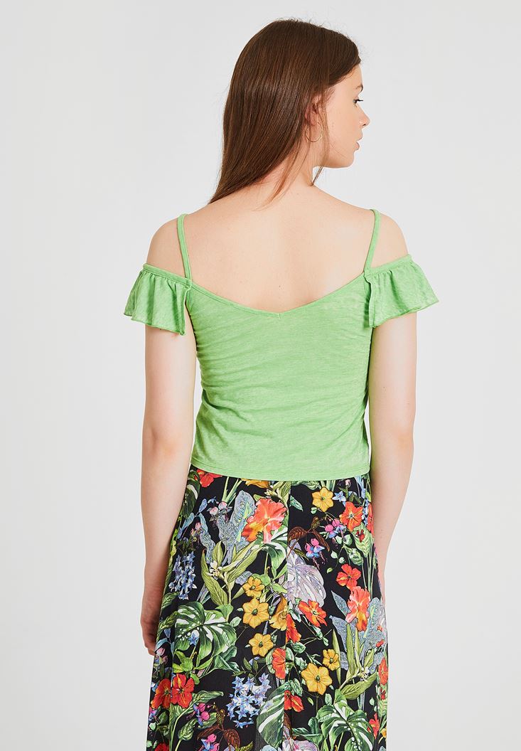 Yeşil Omuzları Fırfırlı İnce Askılı Bluz