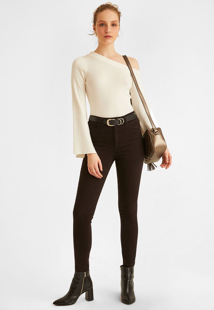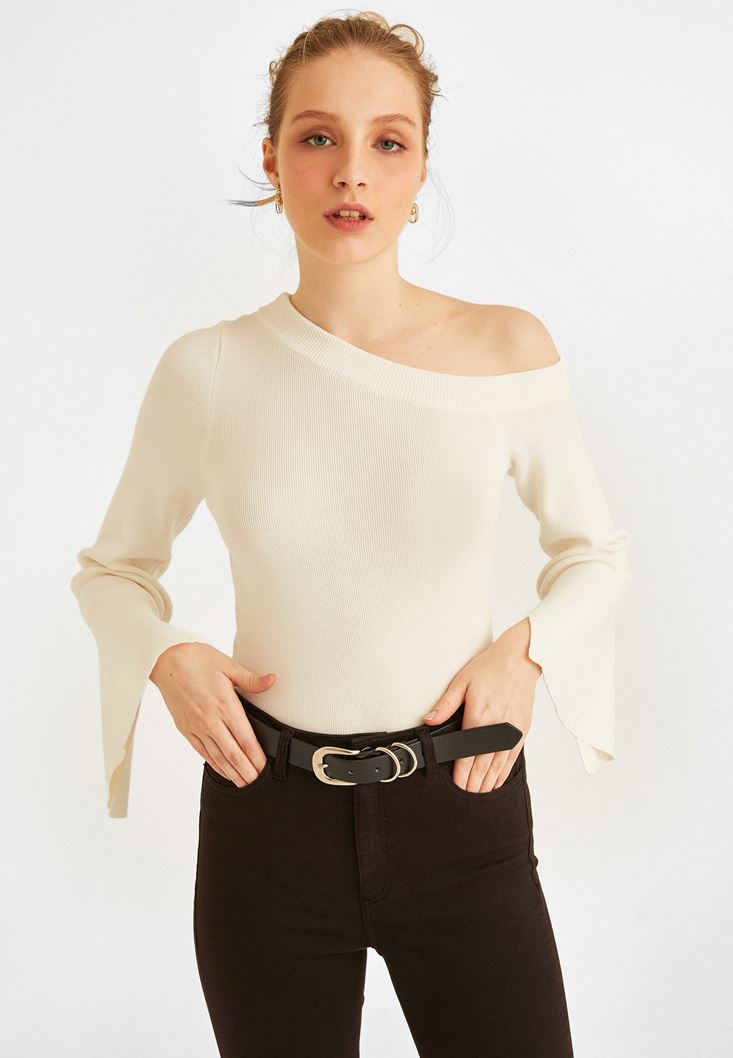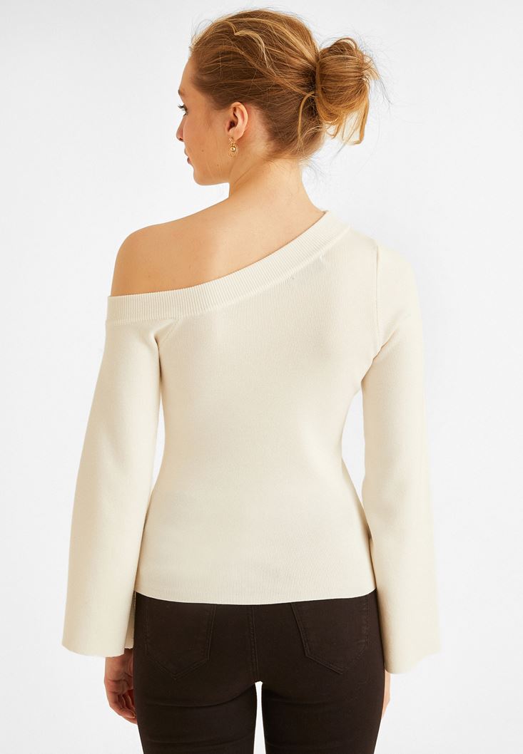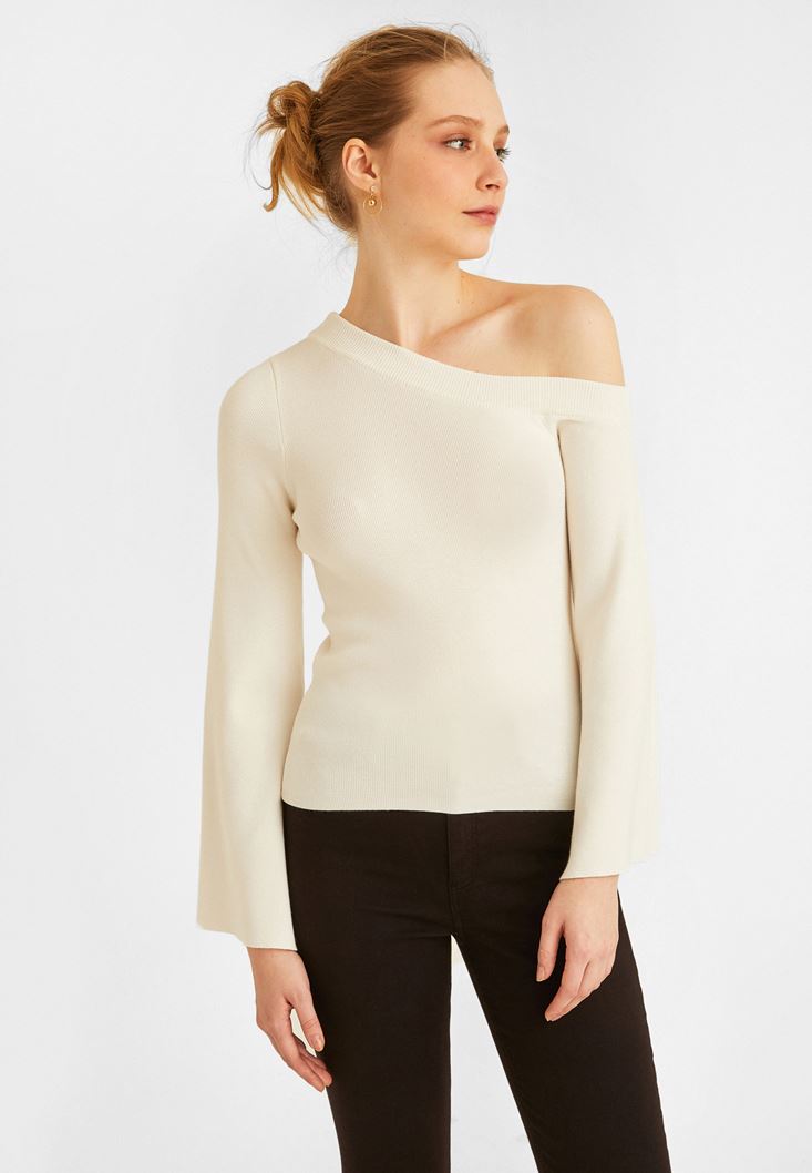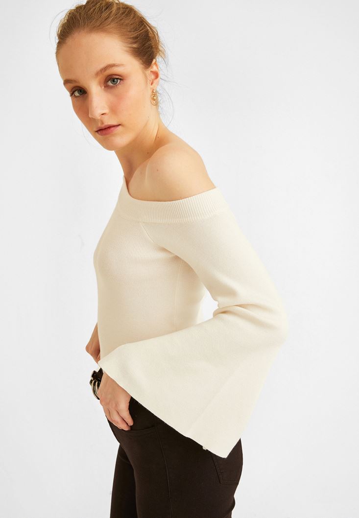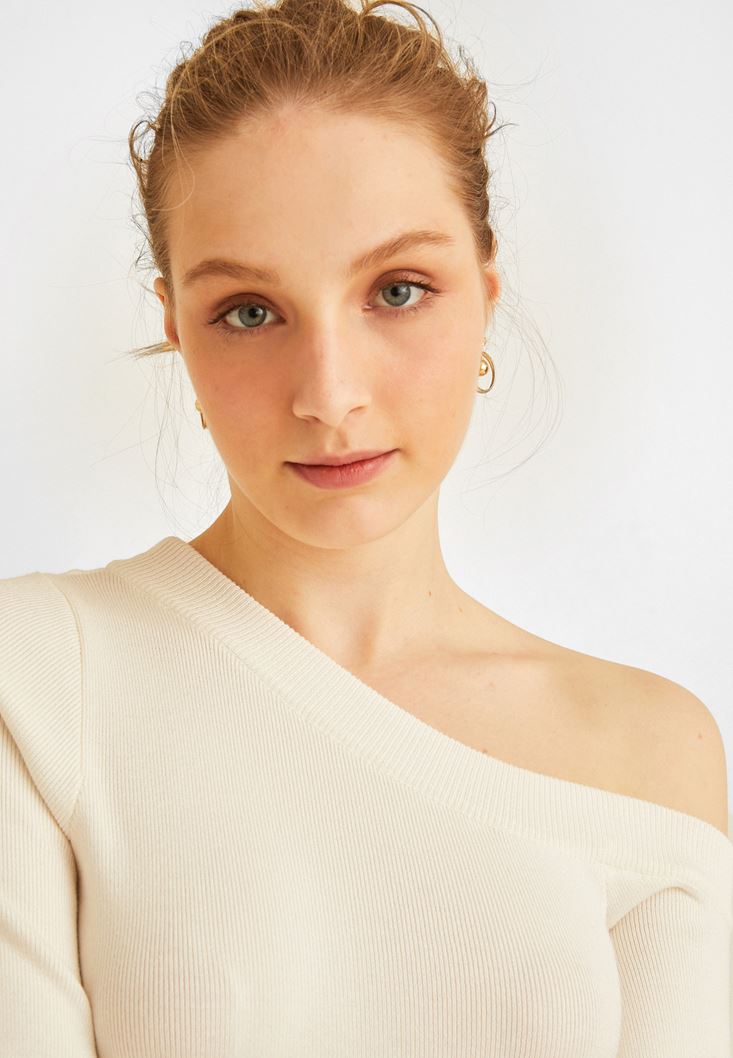 • Bayan Krem Omzu Açık Kazak