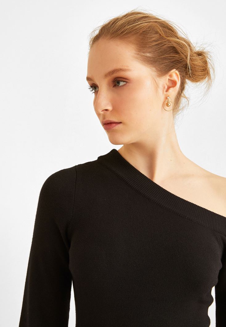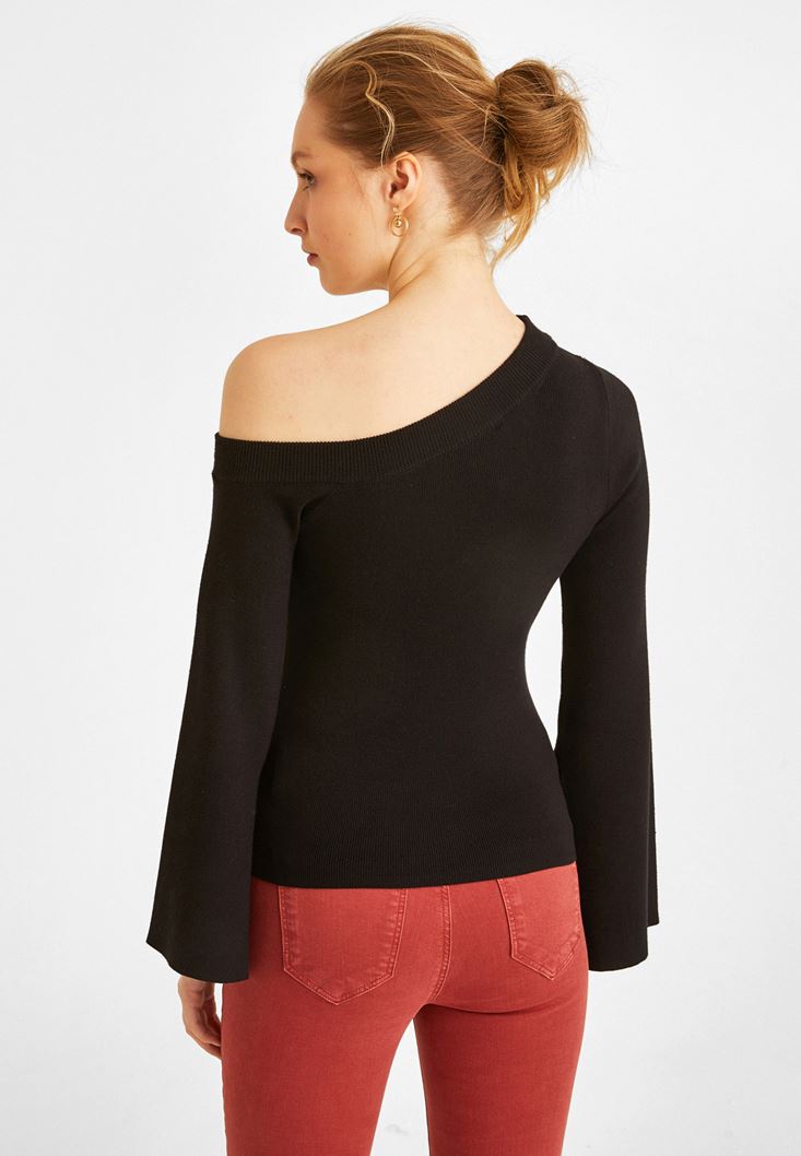 Siyah Omzu Açık Kazak