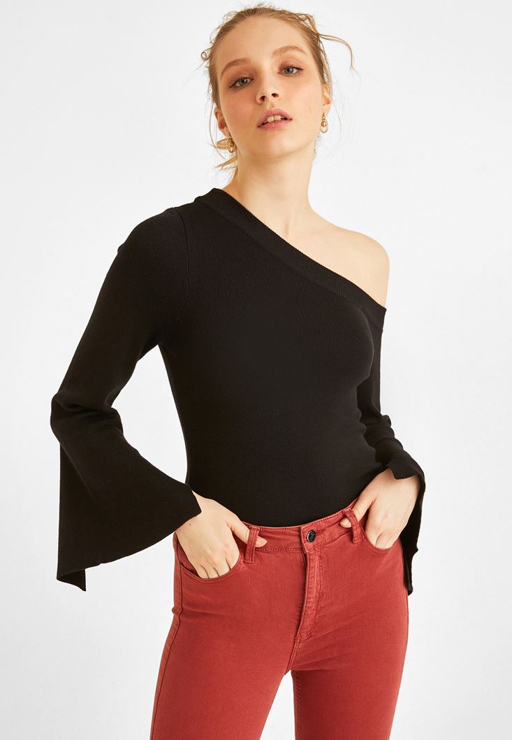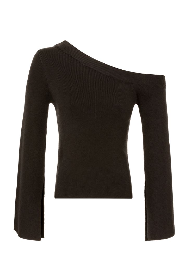 • Bayan Siyah Omzu Açık Kazak