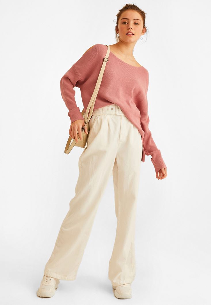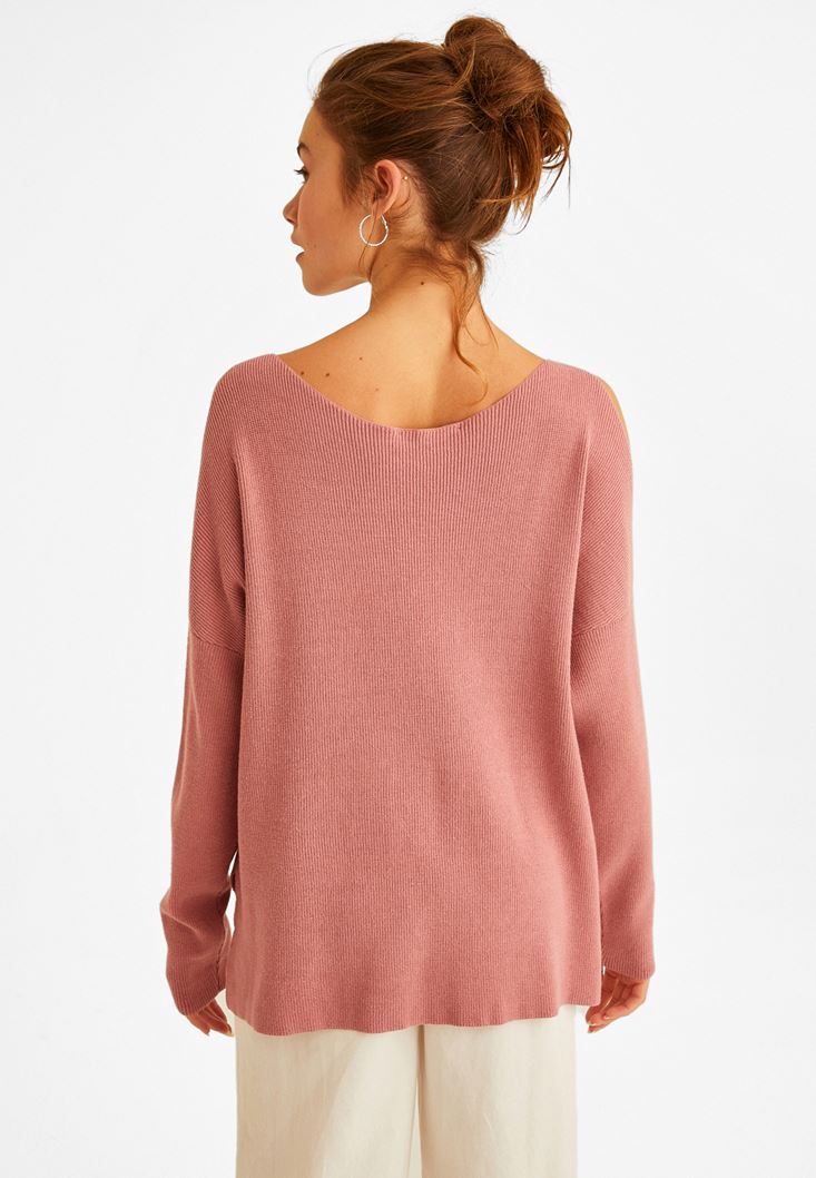 • Bayan Pembe Omzu Kesik Detaylı Kazak