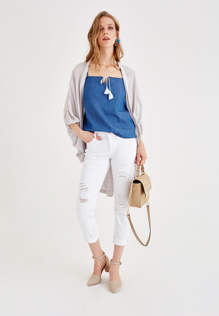 Oxxo Önü Bağlama Detaylı Askılı Jean Bluz 2075572178