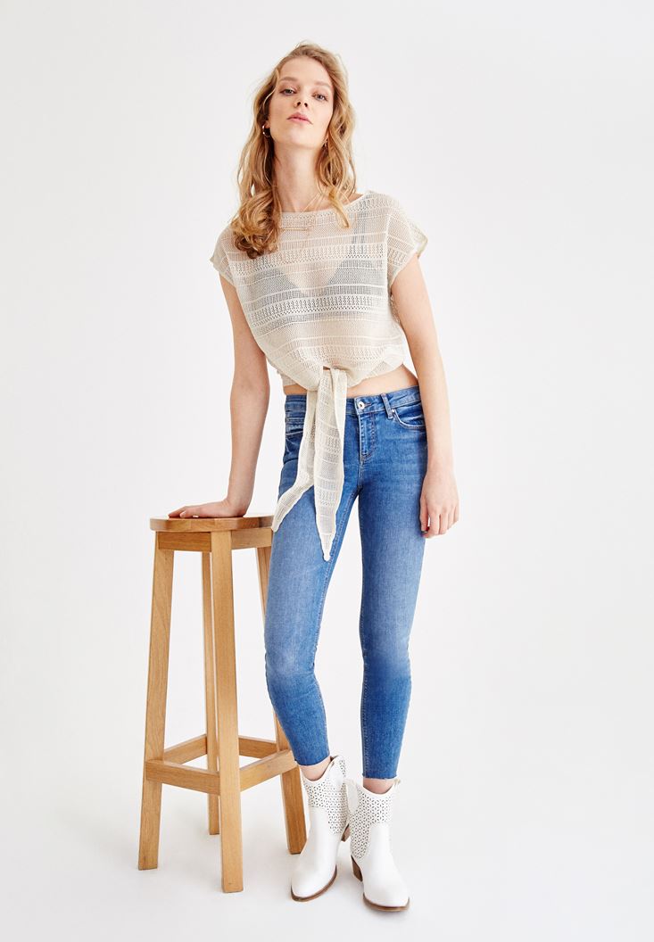 Önü Baglamali Bluz sahip oldugu zarif detaylari, kaliteli dokusu ve sik durusu ile her zaman kullanmaktan keyif alacaginiz bluz modelleri arasinda yer aliyor. Kayik yaka kesimi ve belden baglama detayi ile zarafeti ve enerjiyi basarili bir sekilde bir araya getiren bluz modeli ile elde ettiginiz sikligi çok seveceksiniz. Viskon dokusu ile yumusak bir kullanim hissi ve uzun süreli kullanimlarda bile yüksek konfor elde edebileceginiz tasarimlardan birisi olan bluz modeli ile birbirinden farkli tarzlari deneyebilirsiniz. Örgü detayi ile zarafeti ön plana çikaran OXXO Önü Baglamali Bluz modelinin sahip oldugu yari transparan görünüm büstiyer ve bralet modellerinin ön plana çiktigi kombinler yapmanizda etkili olacak.