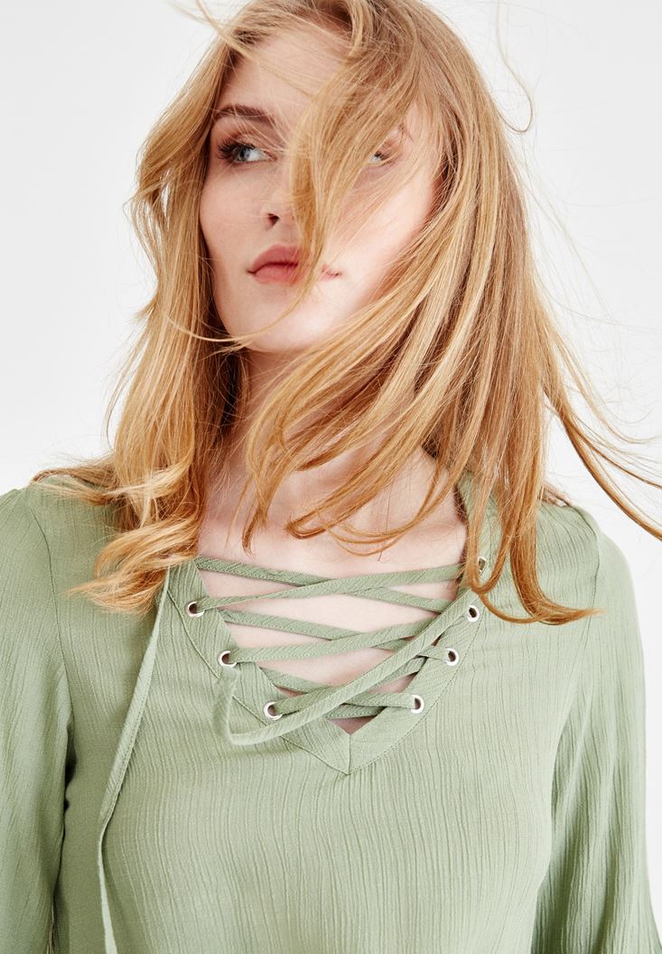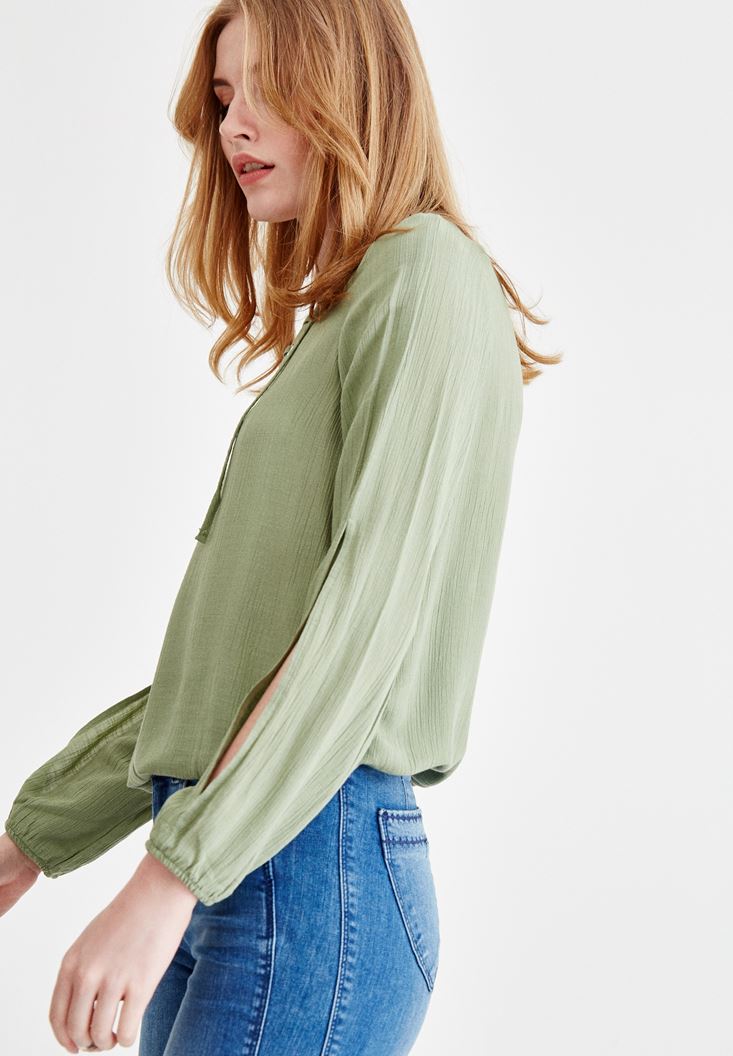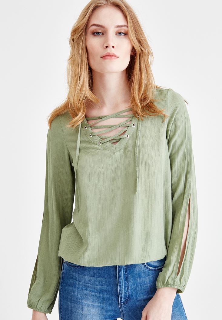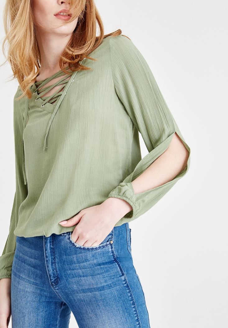 • Bayan Yeşil Önü Bağlamalı Kol Detaylı Bluz