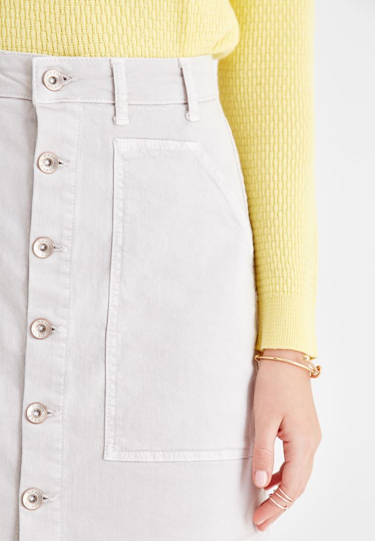 Önü dügme detayli mini etek sahip oldugu her detayi ile en sade üst giyim parçalarinin enerjisini yükseltmeyi basaran, özel bir ürün. Kemer britli bel kesimi, dügmeli tasarimi ve kullanim konforu sunan cepleri ile enerjik bir tasarima sahip olan etek modeli dikis detaylari ile vücudunuza basarili bir sekilde oturarak sikliginizi ön plana çikariyor. Triko, tisört, gömlek veya bluz modelleri ile birlikte kullanabileceginiz önü dügmeli etek modeli sahip oldugu pamuk dokusu sayesinde saglikli ve rahat bir kullanim sunuyor. Pamuk dokunun nefes alan ve nem emiciligi yüksek yapisi ile gün boyu rahat hissetmenizi saglayacak tasarim, OXXO'nun sikligi ve zarafeti bir araya getiren etek modelleri arasinda dikkat çekiyor.