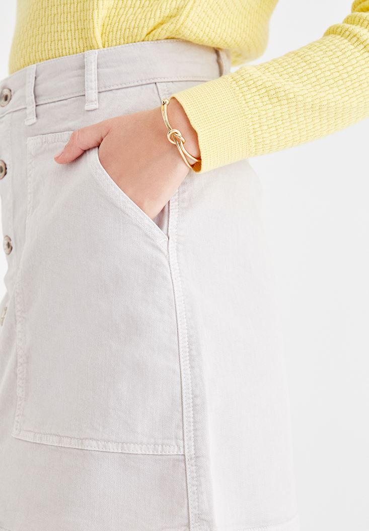 • Bayan Gri Önü Düğme Detaylı Mini Etek
