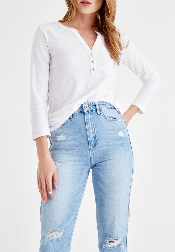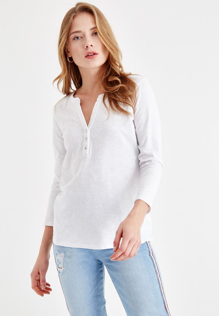 Önü Dügme Detayli Pamuk Gömlek modeli spor sikligi basarili bir sekilde yansitan, sadeligi ön plana çikaran ve zarif detaylari ile her zaman kullanmaktan keyif alacaginiz parçalar arasinda yer aliyor. Pamuk dokusu ile uzun süreli kullanimda konforunuzu ön plana çikaran tasarimin sundugu yüksek nem emicilik sayesinde en uzun ve yorucu günler bile rahatlikla geçiyor. Bisiklet yaka kesime sahip olan tasarimin küçük V dekoltesi ve üç dügmeli yaka detayi tasarima hos bir enerji kazandiriyor. Yarim kol boyu ve dökümlü kesimi ile her zaman severek kullanacaginiz gömlek modelleri arasinda yer alan tasarim, OXXO'nun enerjisi yüksek, özgür ruhlu kadinlardan aldigi ilhami yansitan parçalardan birisi.
