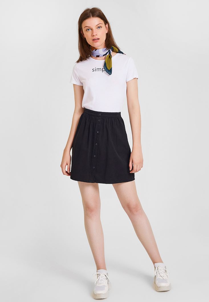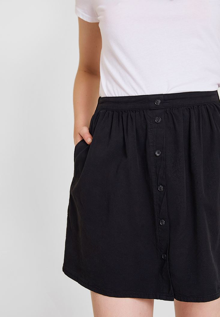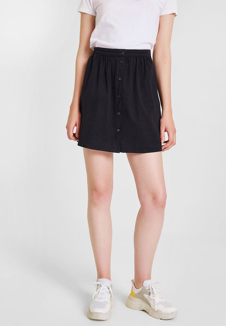Siyah Önü Düğmeli Mini Etek ( TENCEL™ )