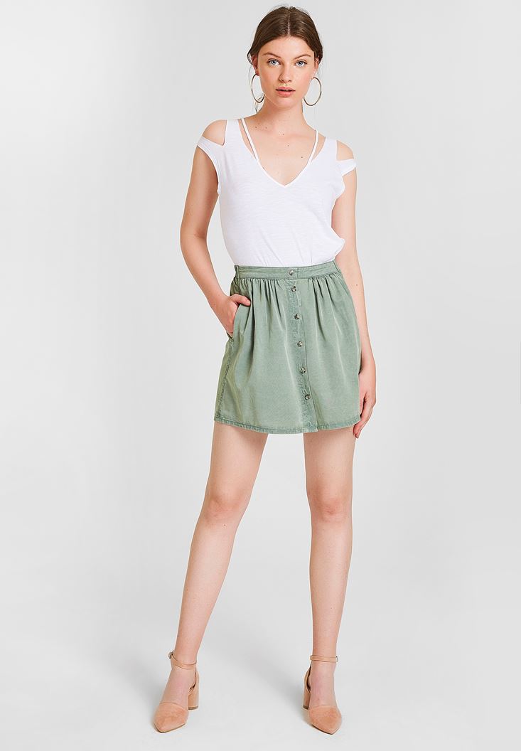 Yeşil Önü Düğmeli Mini Etek ( TENCEL™ )