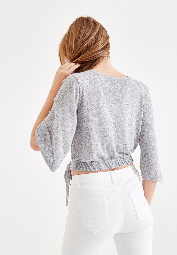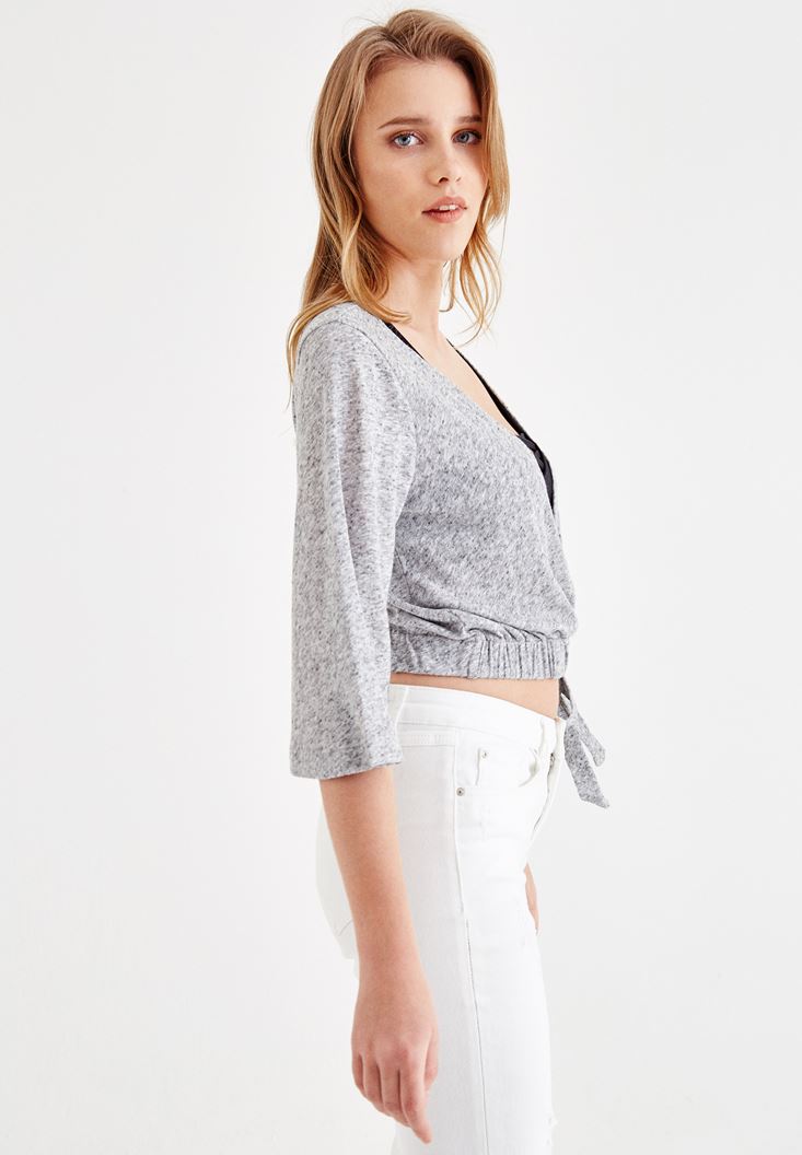 Gri Önü Kruvaze Beli Lastik Detaylı Bluz