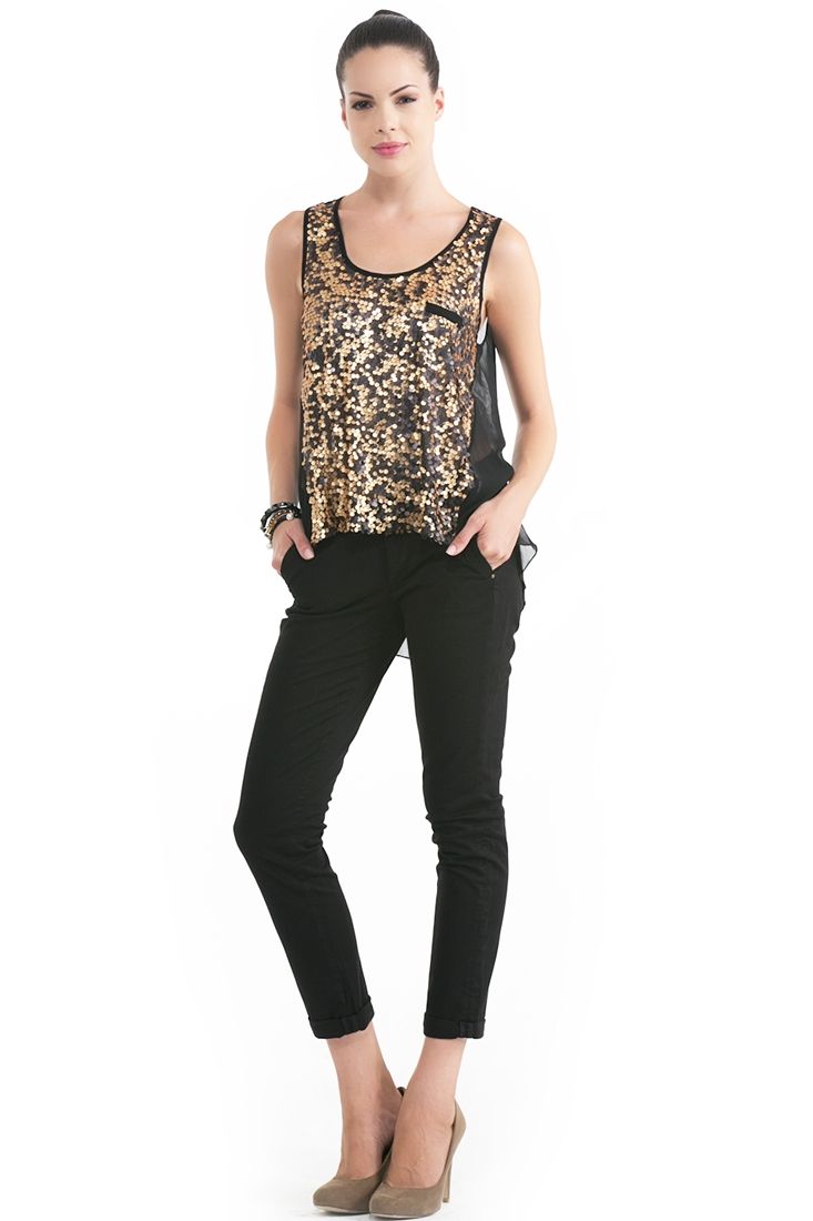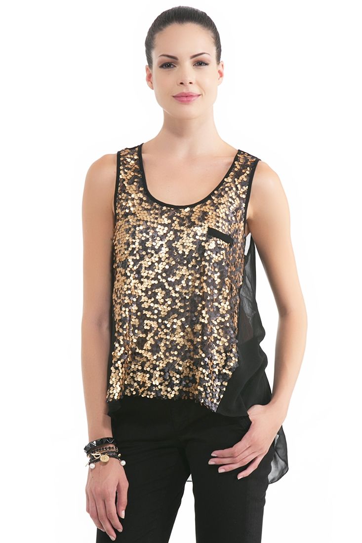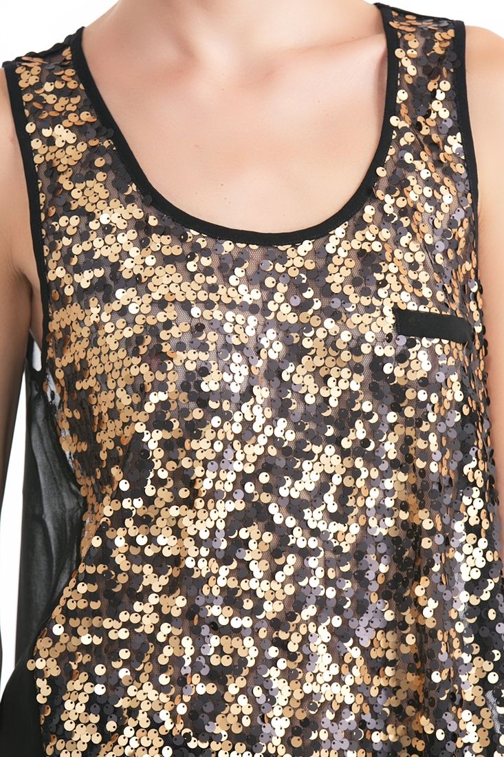 Önü payetli, sırtı dekolteli, şifon atlet.